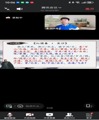邢炜真老师在解读毛泽东诗词《沁园春·长沙》