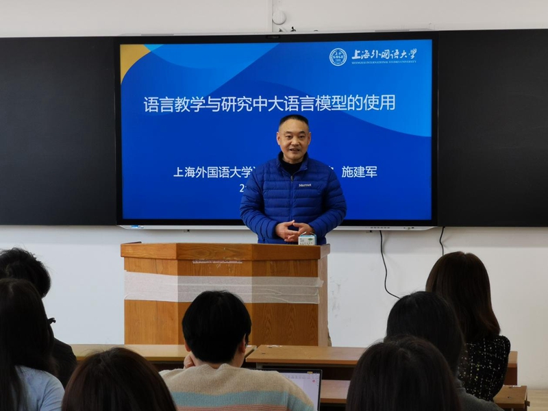 随着各类语言智能工具的出现,大语言模型也引起了广泛关注。为深化师生对人工智能技术的理解,增强实际应用能力,3月6日下午,在外国语学院日语系刘宇楠主任邀请下,上海外国语大学语言研究院博士生导师施建军教授为永利官网作题为“关于语言教学研究中大语言模型的使用”的学术讲座。外国语学院师生参加讲座学习。