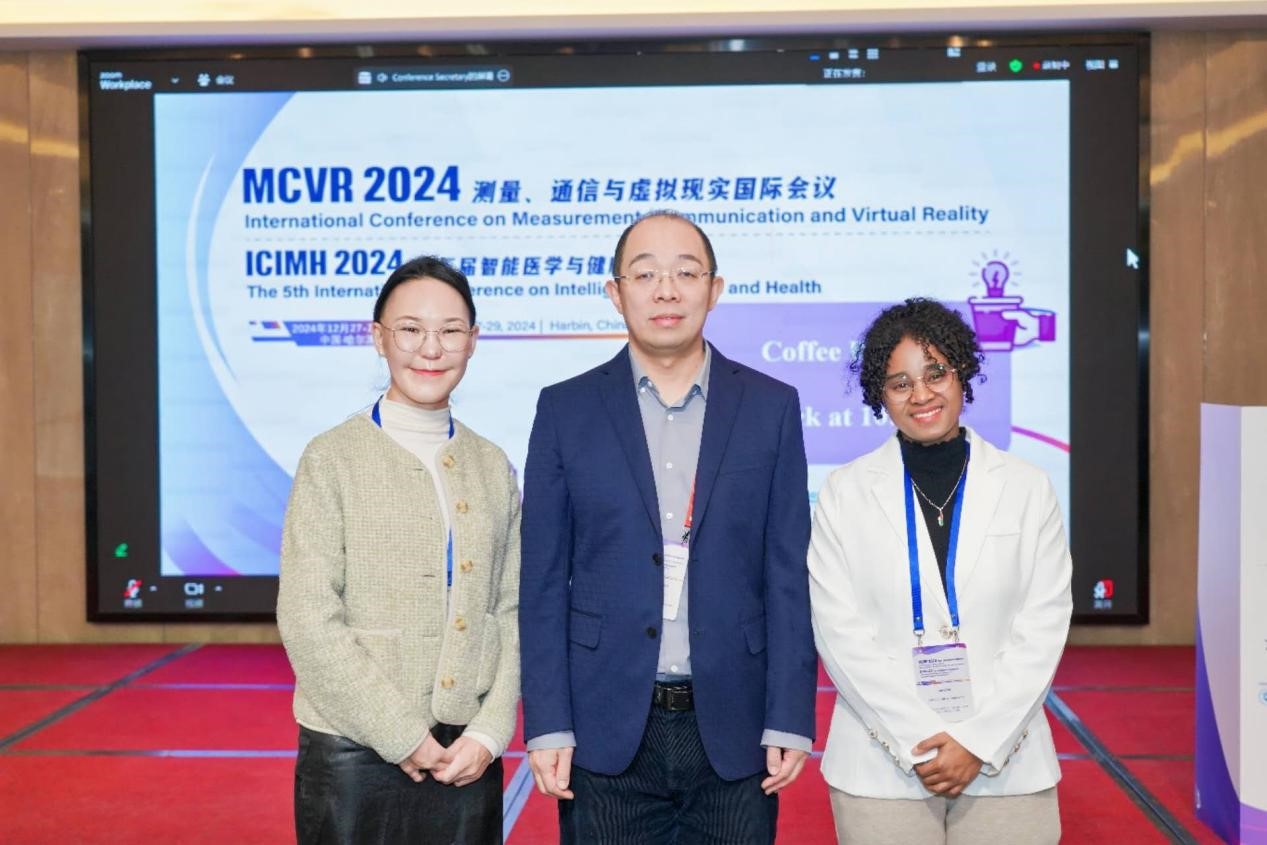 茉莉(右一)在国际测量、通信和虚拟现实大会(MCVR 2024)进行学术报告