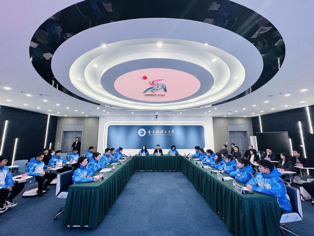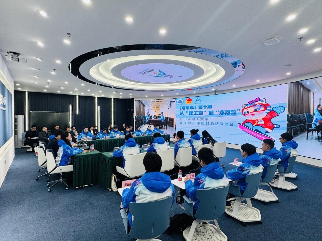 春寒料峭,冰雪渐融。3月13日,适逢亚冬会胜利闭幕一个月,学校在教学主楼智慧校园一体化空间召开“理想说”第十期:从“理工蓝”到“志愿蓝”亚冬会志愿服务座谈会。校党委副书记赵水杉出席会议并讲话,亚冬会志愿者经理、带队骨干教师、青年志愿者代表参加座谈,荣成学院志愿者代表线上同步参会。座谈会由团委书记韩彧博主持。