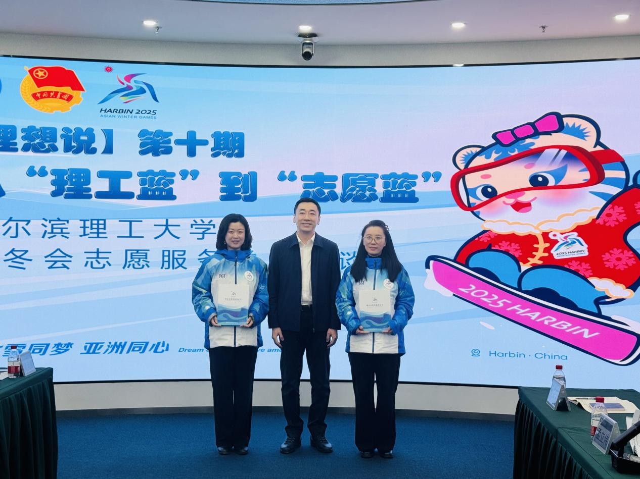 会上,优秀志愿者师生代表依次发言,分享参与亚冬会的难忘经历,讲述在服务中凭借专业素养与热忱态度,为赛事顺利开展贡献力量,深刻领悟奉献精神内涵。现场师生积极互动,气氛热烈。志愿者经理张春烨首先谈到,在统筹全校志愿者过程中她不断提升思维高度,淬炼应变能力,取得零投诉零舆情的好成绩,为学校赢得组委会及社会各界的良好赞誉。作为学生工作战线的一名新兵,辅导员于牟金泽分享了他全流程、全要素参与亚冬会的心得,这段经历使他快速成长。他表示亚冬会的见闻和感受是最生动的实践育人教材,未来将应用到学生思政教育和日常管理工作当中。网络信息中心教师张希超带队在冰壶馆服务,承担着赛场上IT设备运维、无线设备监管、成绩团队运行等重要岗位志愿服务工作,工单分派准确率100%,闭环解决率100%,保障场馆设备运行“零故障”。辅导员梁禹淇将一枚校徽赠予阿联酋运动员,向他们介绍了学校、志愿者以及对冰雪运动的热爱。亚冬会扩大了理工朋友圈,志愿者们成为文化交流的传播者。博士研究生黄秋彤谈到,读博期间参加了亚冬志愿服务,让她觉得人生的价值在理性科研和人文温度之间发生了化学反应,这次经历将激励她在未来继续书写关于理想与责任的青春答卷。硕士研究生马盛楠分享了她的技术保障工作,从支教课堂到学校“珩星”志愿服务队再到亚冬赛场,她一直坚守“奉献、友爱、互助、进步”的初衷,持续的志愿服务让她收获快乐、历练成长。硕士研究生胡百超谈到,同梦、同心代表了团结,体现在竞赛场上,也体现在场下每一位志愿者身上,大家没有了学校和地域的分别,同心协力,保障赛事顺利进行。本科生张博闻谈起2月11日女子双板空中技巧决赛,仍然十分自豪。中国选手包揽冠亚季军,当三面国旗飘扬在白色的雪山之巅,他在沸腾的人潮中记录了这一刻的荣耀。志愿者守护的不仅是赛事,更是十四亿人心跳的瞬间。