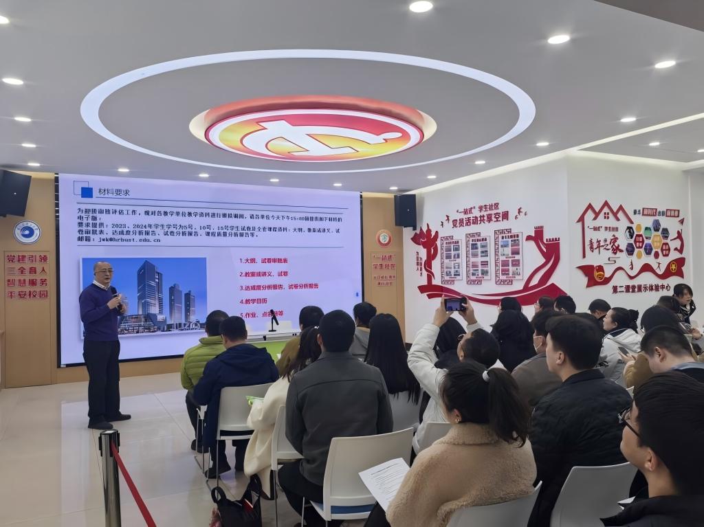 在专题培训环节,大学生心理健康教育中心主任吕彬江老师结合评估观测要点,系统解读了课程达成度分析报告撰写规范、教学日历编制细则及成绩分析表制作标准。帮助教师们理清思路,确保评估材料的科学性和完整性,重点强调课堂思政的重要性。心理健康教育中心徐博伦老师进行了课堂思政的规范讲解,要求教师要以学生为中心,优化教学设计,将思政元素与专业知识有机融合,落实立德树人根本任务:提前到岗、规范言行,以饱满的热情和严谨的态度上好每一堂课。