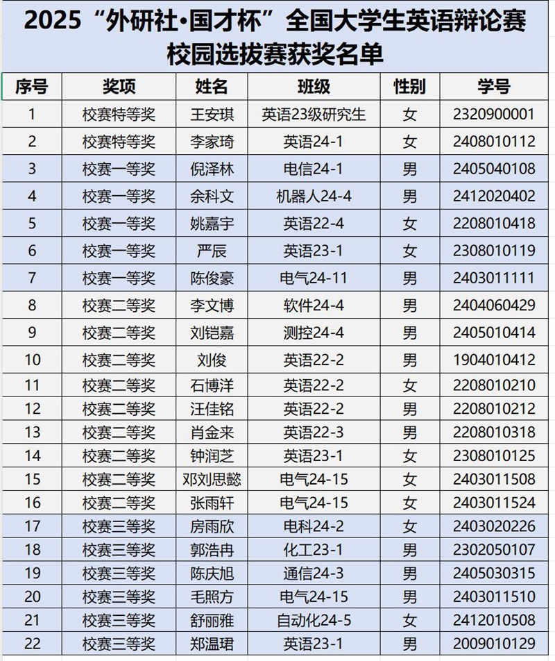 此次大赛前,在全校范围内进行了校园选拔赛,最终确定获奖选手名单。教务处、研究生处和外国语学院对本次赛事给予了极大的关注和支持。本次校选赛共有近40名选手报名参赛,覆盖全校各学院。