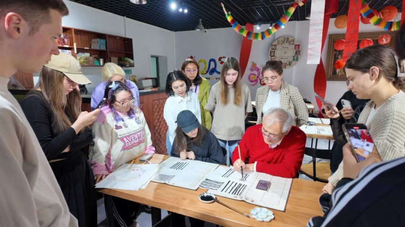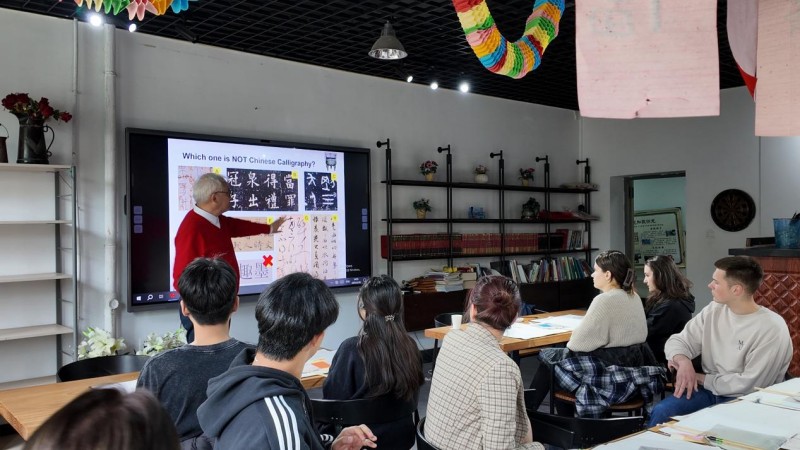 4月30日下午,外国语学院邀请上海交通大学周斌教授到校为留学生们带来一堂充满东方韵味与文化内涵的书法课,带领学生们穿越千年时光,领略中国书法艺术的独特魅力。