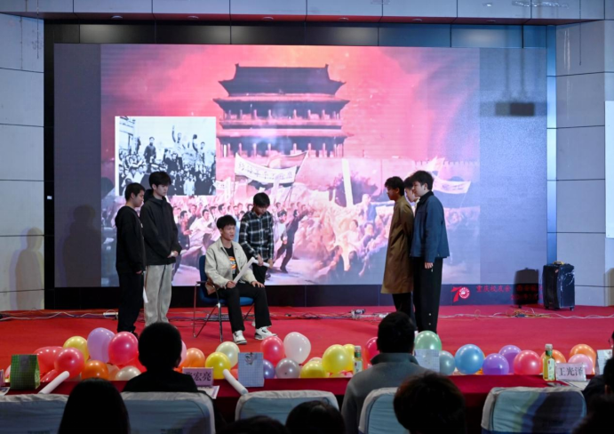 决赛前夕,舞台剧《风云儿女》率先精彩上演,穿越历史的硝烟,将观众带回到那个民族危亡、风雨飘摇的特殊年代,让理工青年们深刻领略到在烽火中淬炼的青春志,以及用热血谱写的爱国情怀。