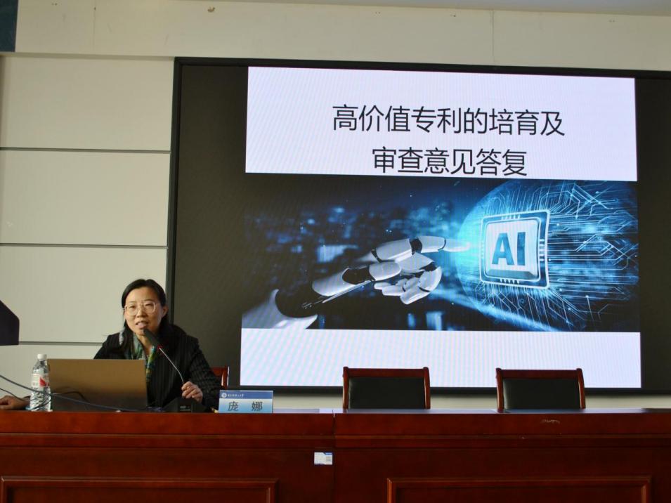 培训过程中,庞娜凭借深厚的专业基础和丰富的实践经验,从专利局审查员角度讲授了高价值专利培育策略和审查意见答复技巧。在专利培育方面,她为师生们梳理了从创新构思到专利布局的清晰路径,详细阐述如何在创新构思阶段敏锐捕捉具有潜在价值的创意,强调了创新构思的前瞻性和实用性对于高价值专利培育的重要性。在专利审查意见答复方面,庞娜提供了实用方法和思路,她通过分析专利审查过程常见的问题和挑战,讲授了如何准确理解审查意见要点,以及如何有针对性地进行答复。最后,通过实际案例分析,分享了如何运用专业知识和逻辑思维,有效应对审查意见中提出的问题,提高专利申请通过率的宝贵经验。