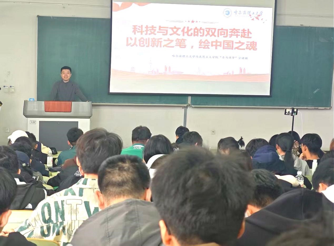 辅导员王博老师以“科技与文化的双向奔赴”为主题,以电影《哪吒2》和科技成果DeepSeek为例,阐述科技与文化的紧密联系,强调将技术融入人文关怀,推动传统文化与现代科技交融,呼吁新时代青年应肩负使命,要有志气挖掘文化基因、创新科技;要有底气构建知识结构、开展跨界协作;要有骨气突破技术封锁、化解文化冲突。