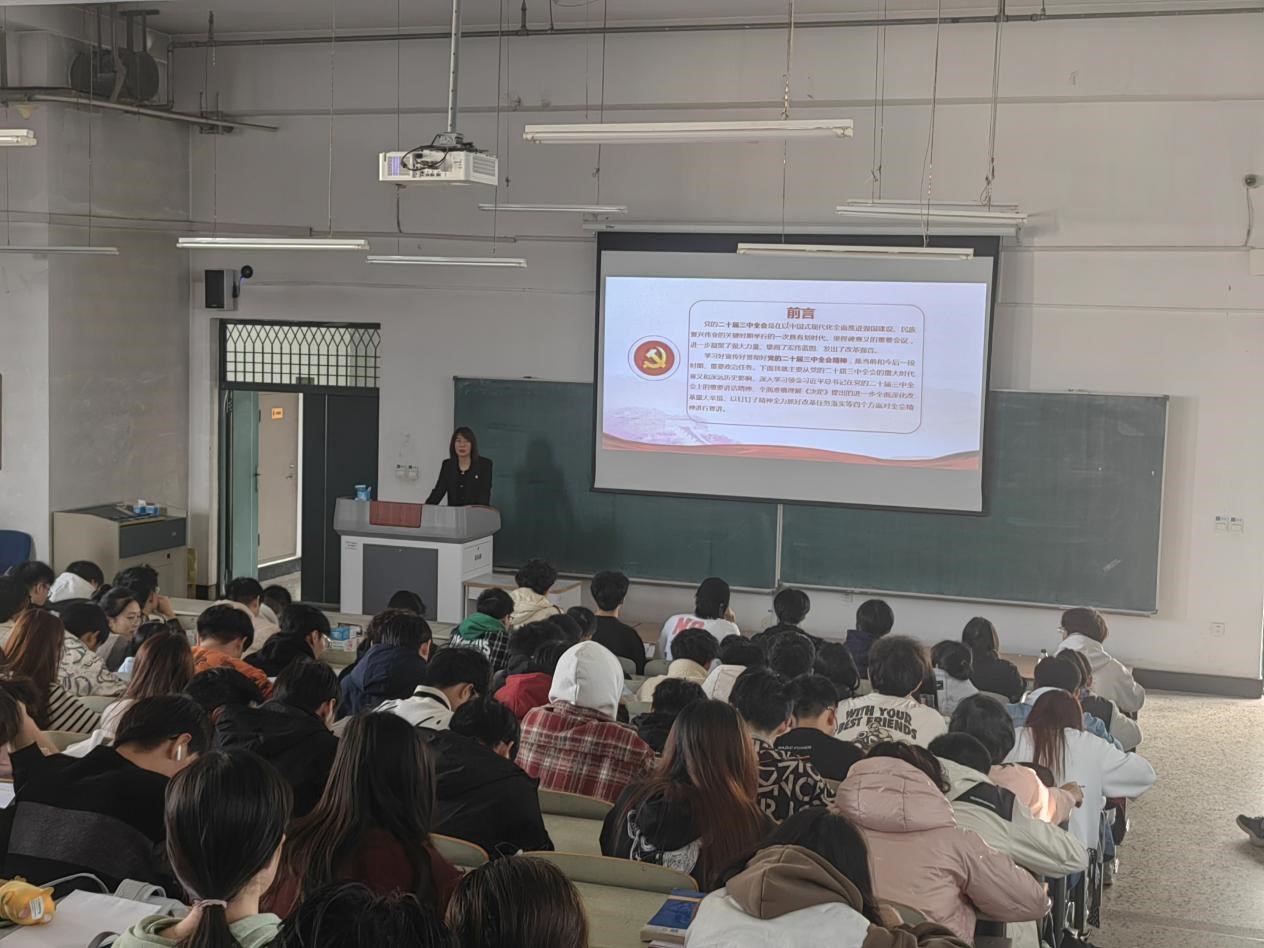 学院党委书记黄春丽以“赓续红色血脉汲取奋进力量”为主题开讲“首堂党课”。她带领学员回顾党的二十大、二十届二中、三中全会精神,从历史维度阐释新时代青年的使命与挑战,重点解读文化交流对构建人类命运共同体的重要意义。她强调,新时代青年需修身立德、铭记历史,以“大我”格局勇担强国使命,让青春在服务国家战略中绽放光彩。