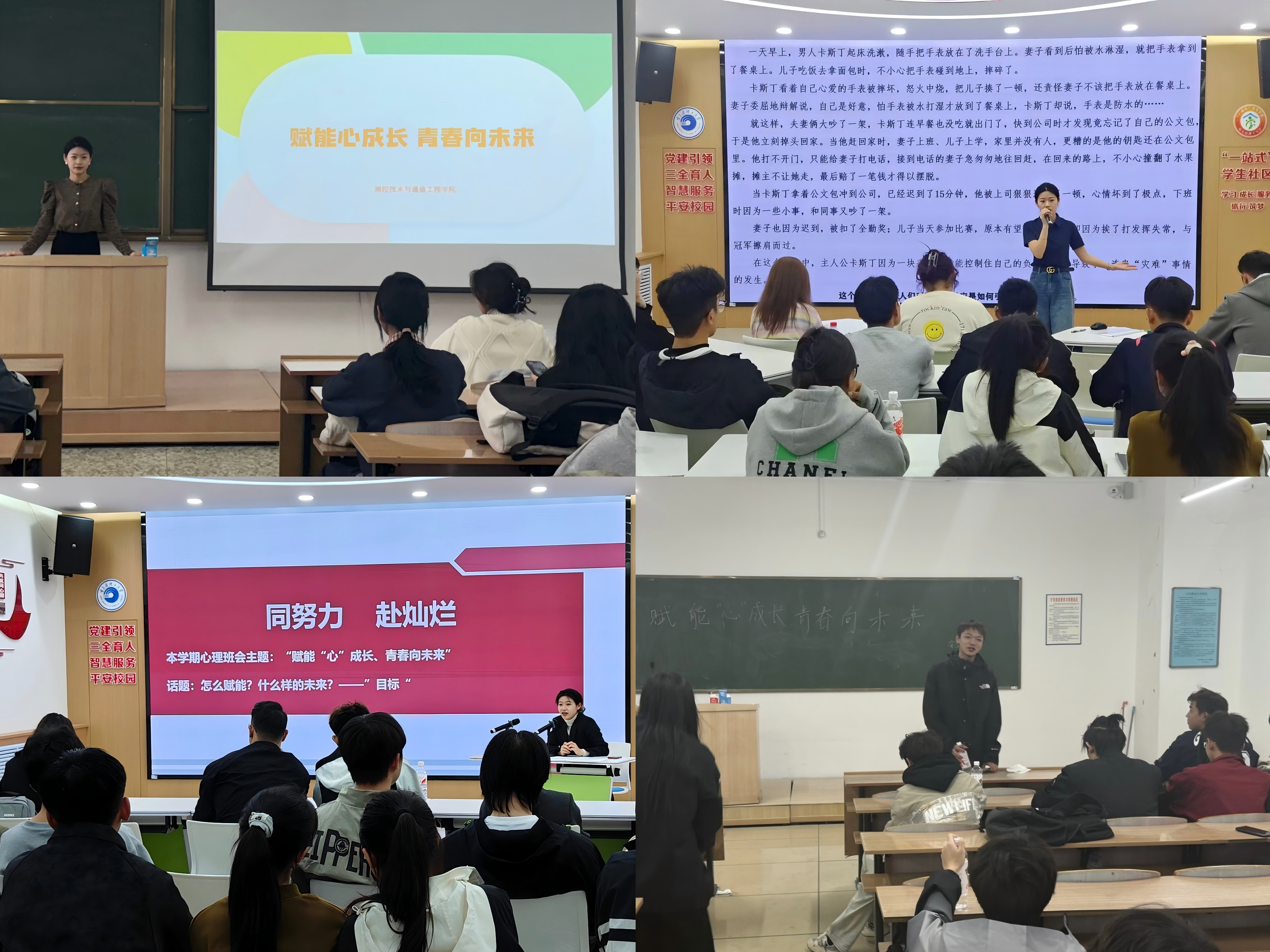 自动化学院以“赋能‘心’成长、青春向未来”为主题,通过心理委员的引导,成功开展了系列主题班会。活动不仅增强了同学们的心理健康意识,还提升了班级凝聚力,为同学们指明了前进的方向,激发了他们为梦想努力奋斗的决心。