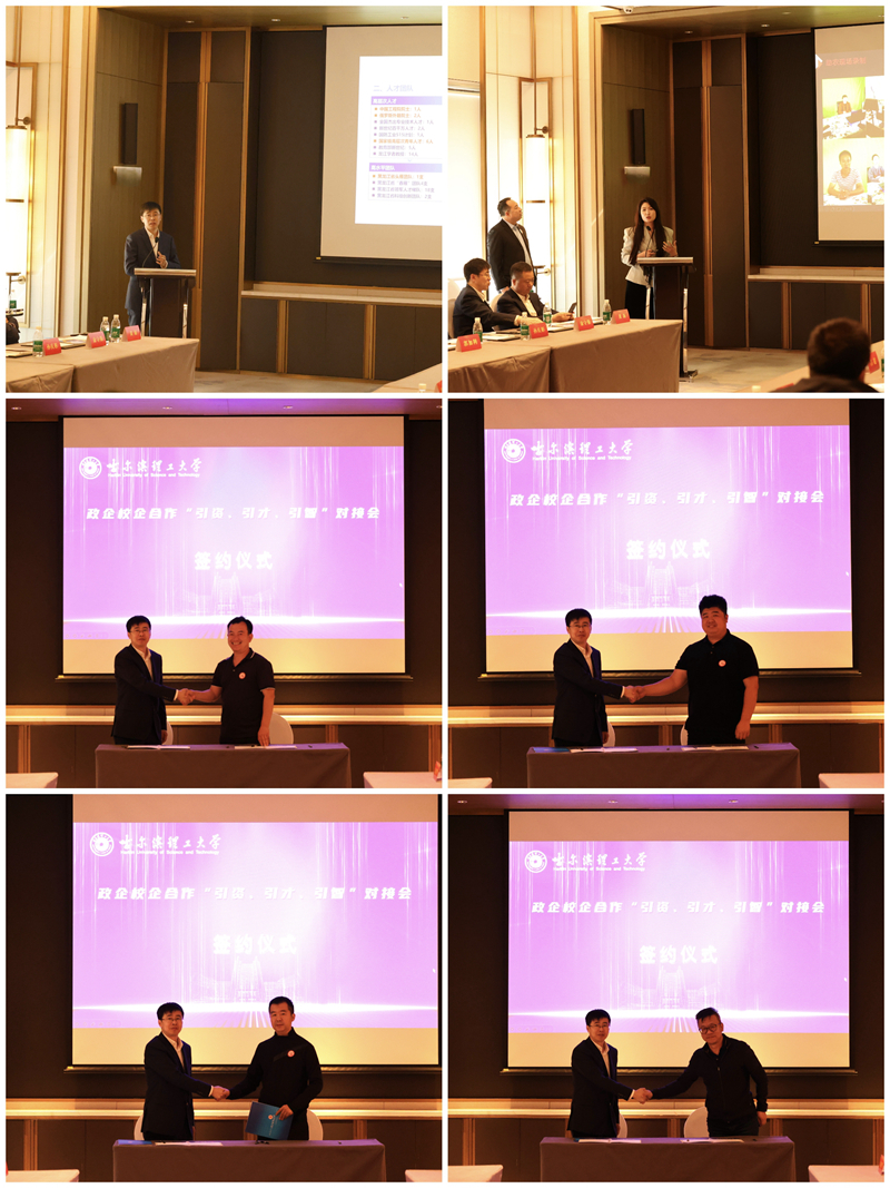 学校代表与校友企业代表推介宣讲并签署产学研合作协议