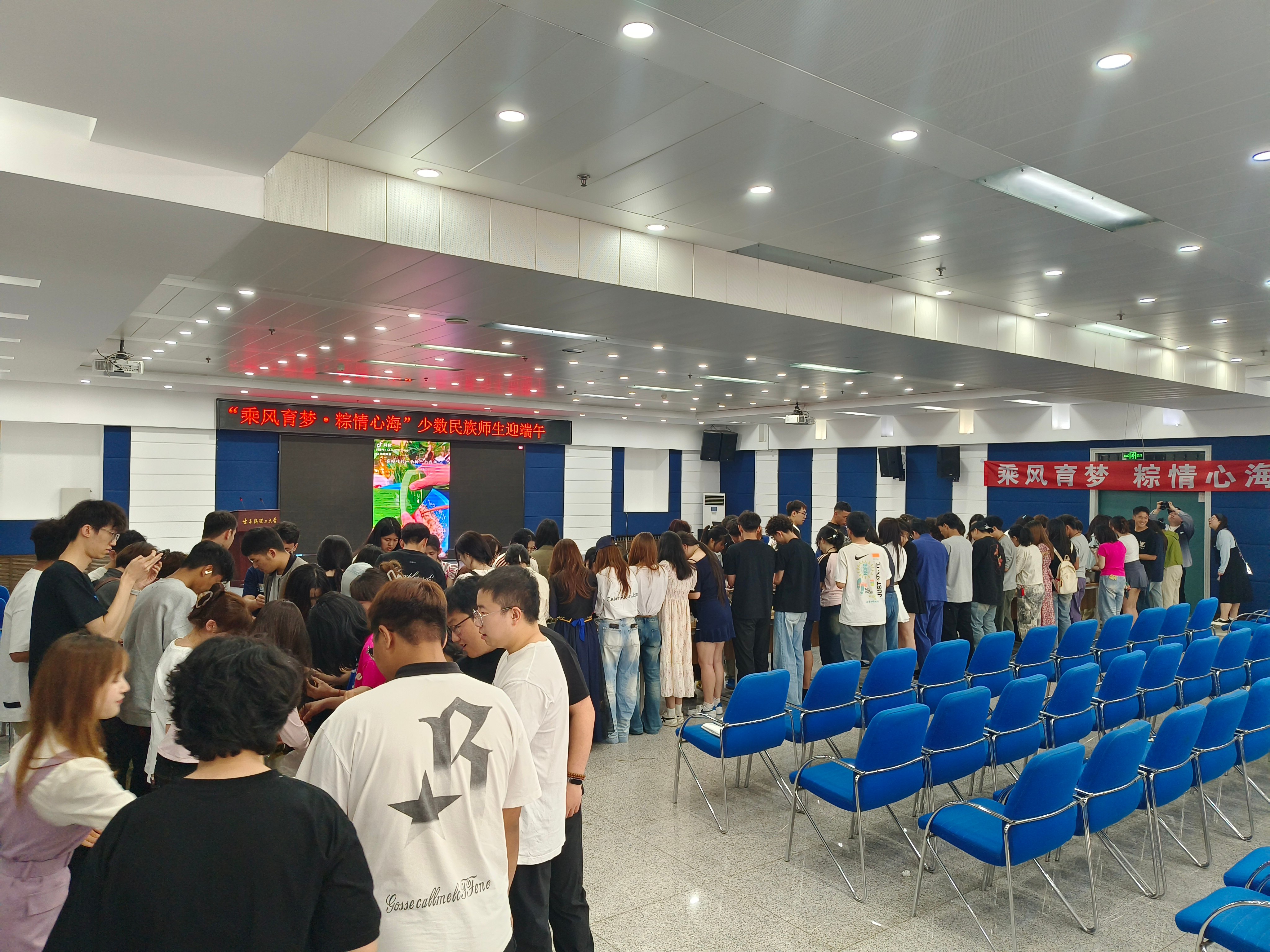 来自藏族、维吾尔族、哈萨克族、回族、布依族、汉族等各民族师生欢聚一堂,学习端午节文化,感受中华优秀传统文化的魅力,加深对中华优秀传统文化的认同。学生代表电信24-5班王湛越、信息23-4班阿尔孜古丽·吐尼牙孜、工设22-2伊木然·阿卜杜热西提为师生们带来精彩的乐器和歌舞表演。金融22-1班的迪丽菲热·外力以喀什青年的名义和在座的师生分享喀什的端午节习俗,讲述着“各美其美,美美与共”的中国故事。