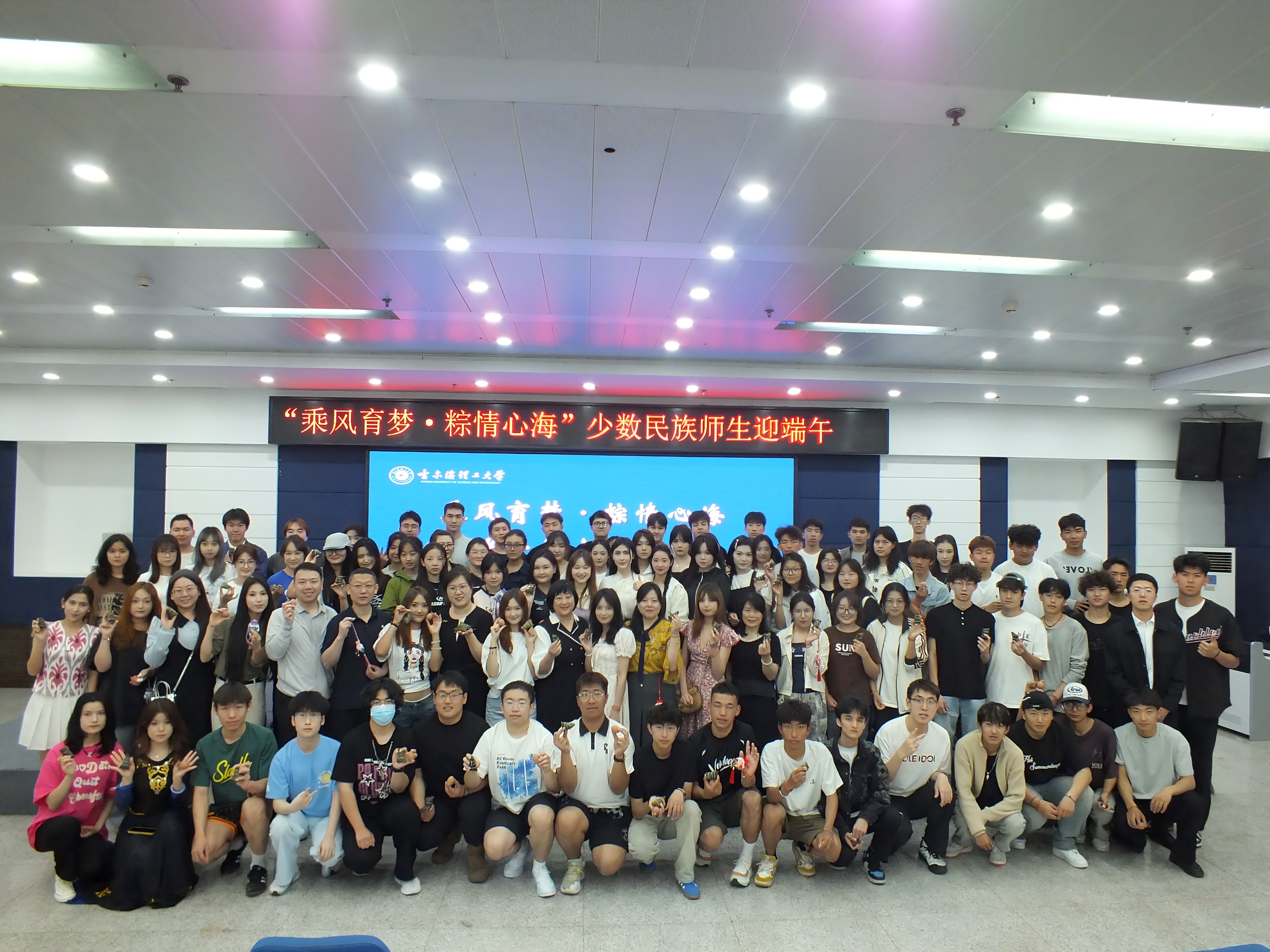 为深入学习贯彻习近平总书记关于弘扬中华优秀传统文化的重要指示精神,推进学校民族团结进步教育高质量发展。5月29日上午,学校在西区1号教学楼多功能厅举办“乘风育梦·粽情心海”少数民族学生迎端午活动。党委统战部副部长王莉娟、党委学生工作部 大学生就业服务中心班子成员、党委统战部工作人员、少数民族学生专职辅导员及80余名各民族学生代表参加活动。活动由“石榴籽”工作室学生骨干金融22-1班热伊塞·阿不旦力木主持。