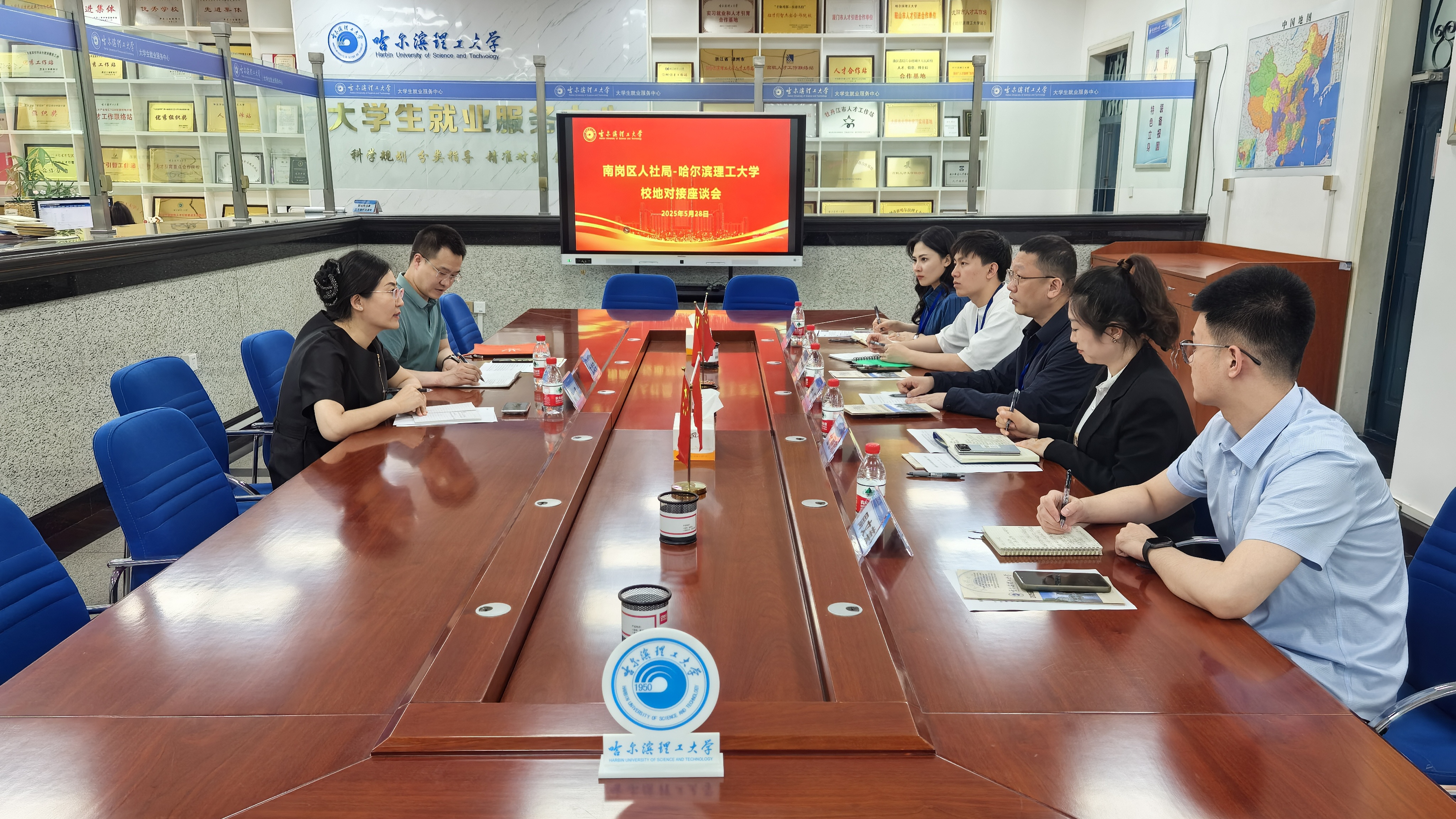 5月28日下午,南岗区人力资源和社会保障局副局长、三级调研员黄晶一行来校座谈交流,双方在西区1号楼205会议室围绕政校企合作等相关事宜展开深入探讨,就业服务中心副主任崔征主持会议。