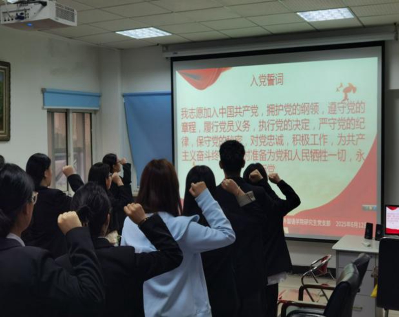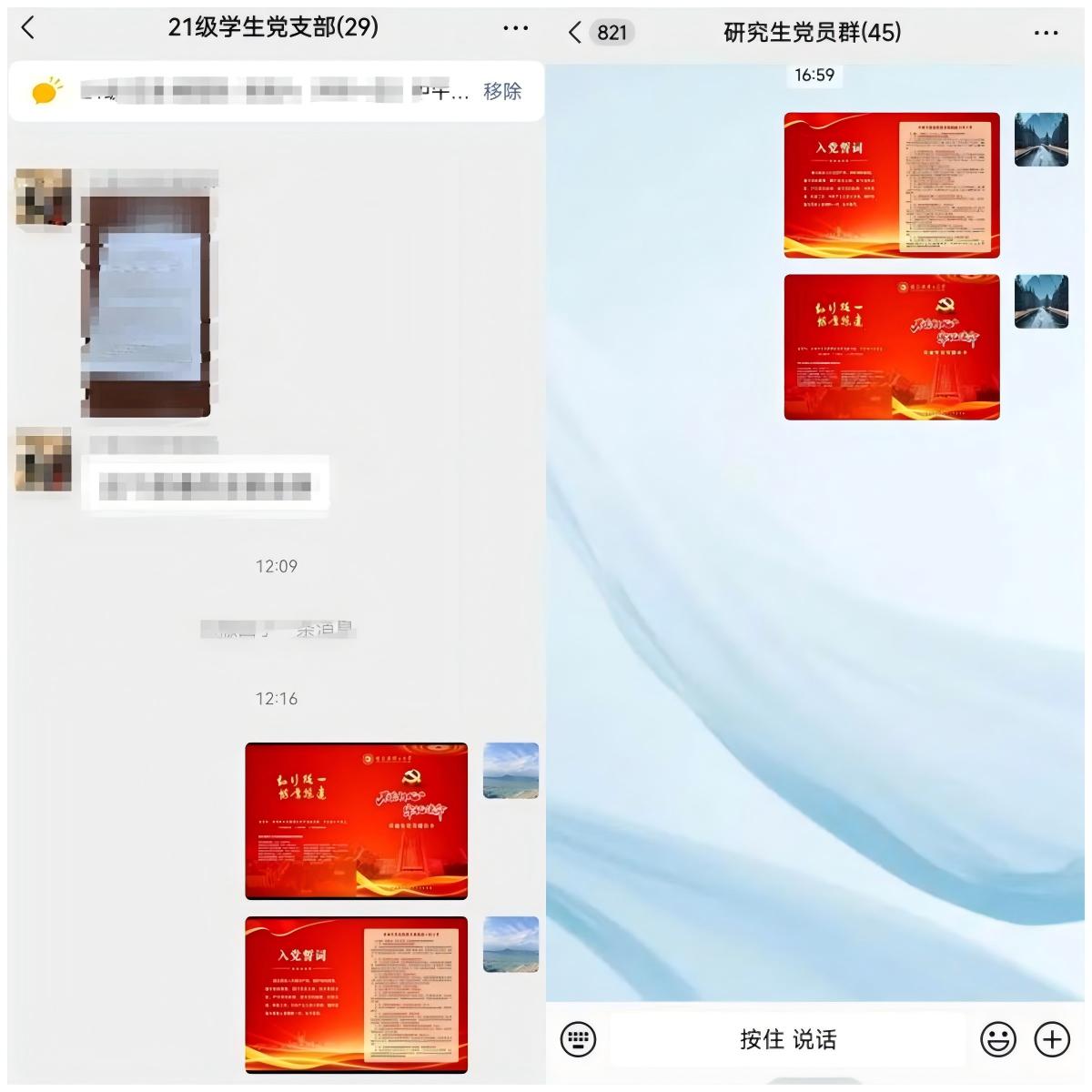全体毕业生党员依次进行了重温入党志愿书、重温入党谈话、重温入党誓词的“三个重温”主题党日活动。在重温入党志愿书过程中,毕业生党员再次回忆自己亲笔写下的入党志愿书,字里行间重温了申请入党时的赤诚初心、坚定信念与庄严承诺,回顾了在党组织培养下成长的历程与收获。在重温入党谈话过程中,回溯入党谈话场景,毕业生党员们深刻感受到党组织曾经的谆谆教诲和殷切期望,进一步坚定了为党和人民事业不懈奋斗的崇高理想与坚强决心。在重温入党誓词过程中,面对鲜红党旗,毕业生党员们再次举起右拳,以铿锵誓言许下对党的庄严承诺。