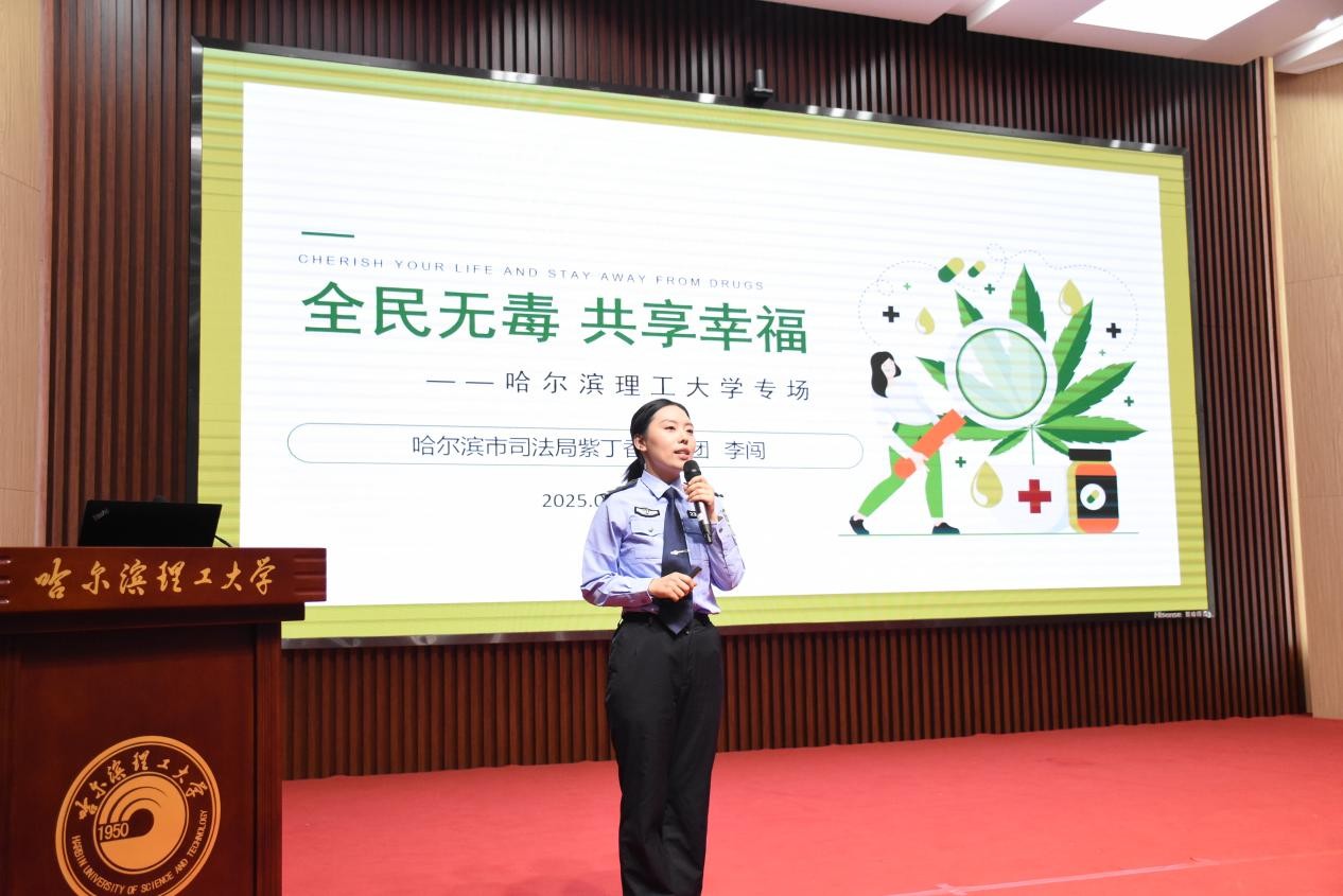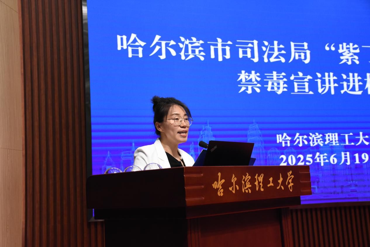 在第37个“6·26”国际禁毒日来临之际,为深入学习贯彻习近平新时代中国特色社会主义思想,坚决落实《全民禁毒宣传教育工作实施意见》,推动“大思政课”理念落地生根,厚植青年学生法治意识与使命担当,6月19日下午,哈尔滨市司法局“紫丁香”宣讲团走进77779193永利官网,在教学主楼五楼报告厅开展以“全民无毒·共享幸福”为主题的禁毒宣讲活动,奏响青春与法治共鸣的铿锵之声。