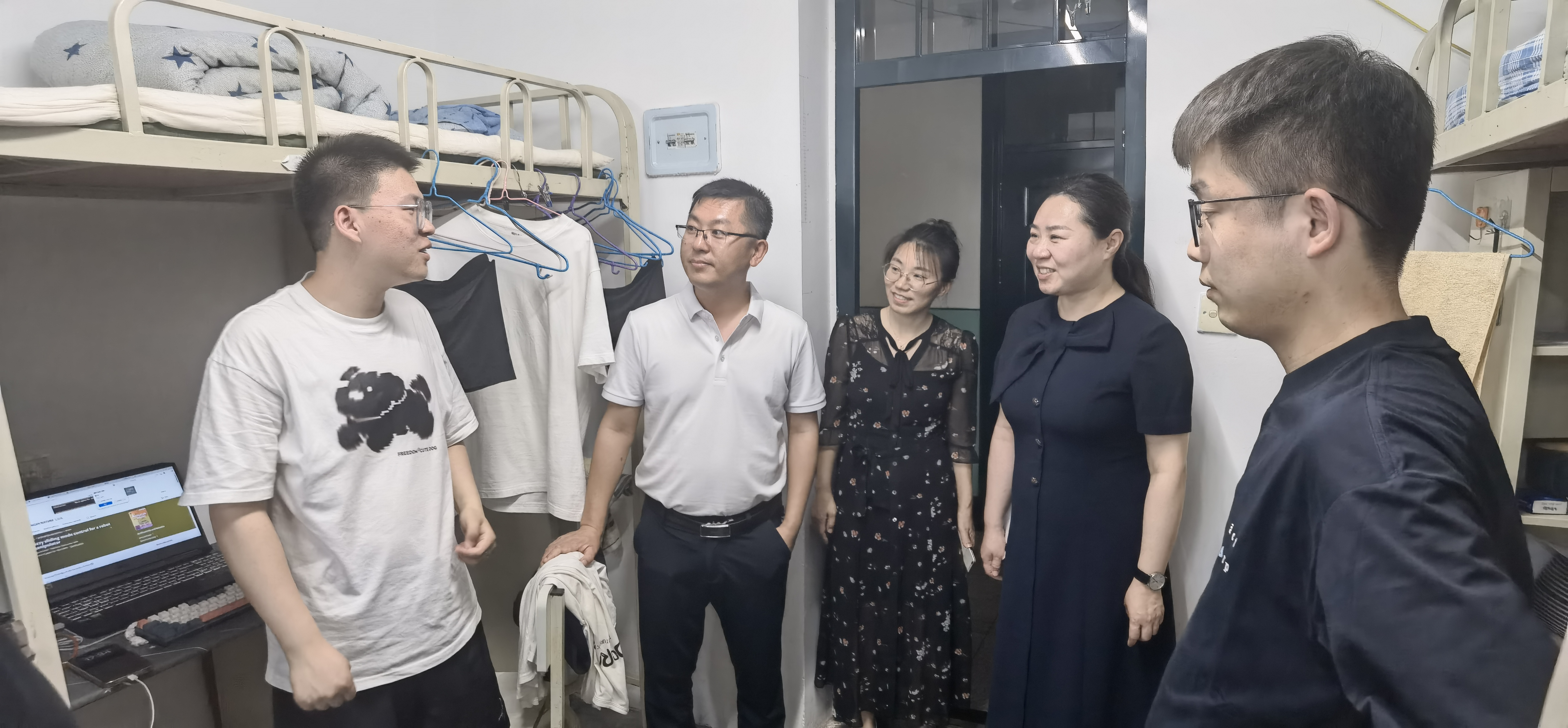 为扎实做好2025届毕业生文明离校服务工作,了解毕业生思想动态和实际需求,全力助推毕业生高质量就业,确保毕业生安全、平稳、有序离校,6月24日,自动化学院党委书记张颖、院长胡军、党委副书记刘桂娟和学院毕业班辅导员王圣哲,深入毕业生寝室,为即将离校的学子送上真挚祝福与暖心嘱托。