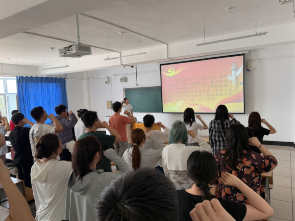 “我志愿加入中国共产党,拥护党的纲领,遵守党的章程……”在学生党支部书记赵书玉老师的领誓下,全体2025届毕业生党员举起右拳,齐声重温入党誓词。字字千钧的誓词回荡在活动现场,不仅唤醒了党员们入党时的神圣承诺,更让大家深刻认识到,作为新时代青年党员,需始终将个人理想与国家前途、民族命运紧密结合,以实际行动践行“为中国人民谋幸福、为中华民族谋复兴”的初心和使命。