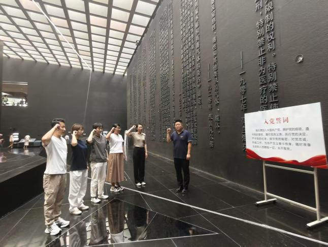 参观结束后,全体党员在陈列馆庄严肃穆的氛围中,整齐列队,高举右拳,重温入党誓词。“我志愿加入中国共产党,拥护党的纲领,遵守党的章程…”铿锵有力的誓言在馆内回荡,表达了党员们对党的无限忠诚和为共产主义事业奋斗终身的坚定决心。在特殊的历史地点重温誓词,让每一位党员的心灵都受到了一次深刻的洗礼。大家纷纷表示,这不仅是一次誓词的复诵,更是一次初心的叩问和使命的重温,提醒自己要时刻牢记党员身份,永葆政治本色,将誓言内化于心、外化于行。