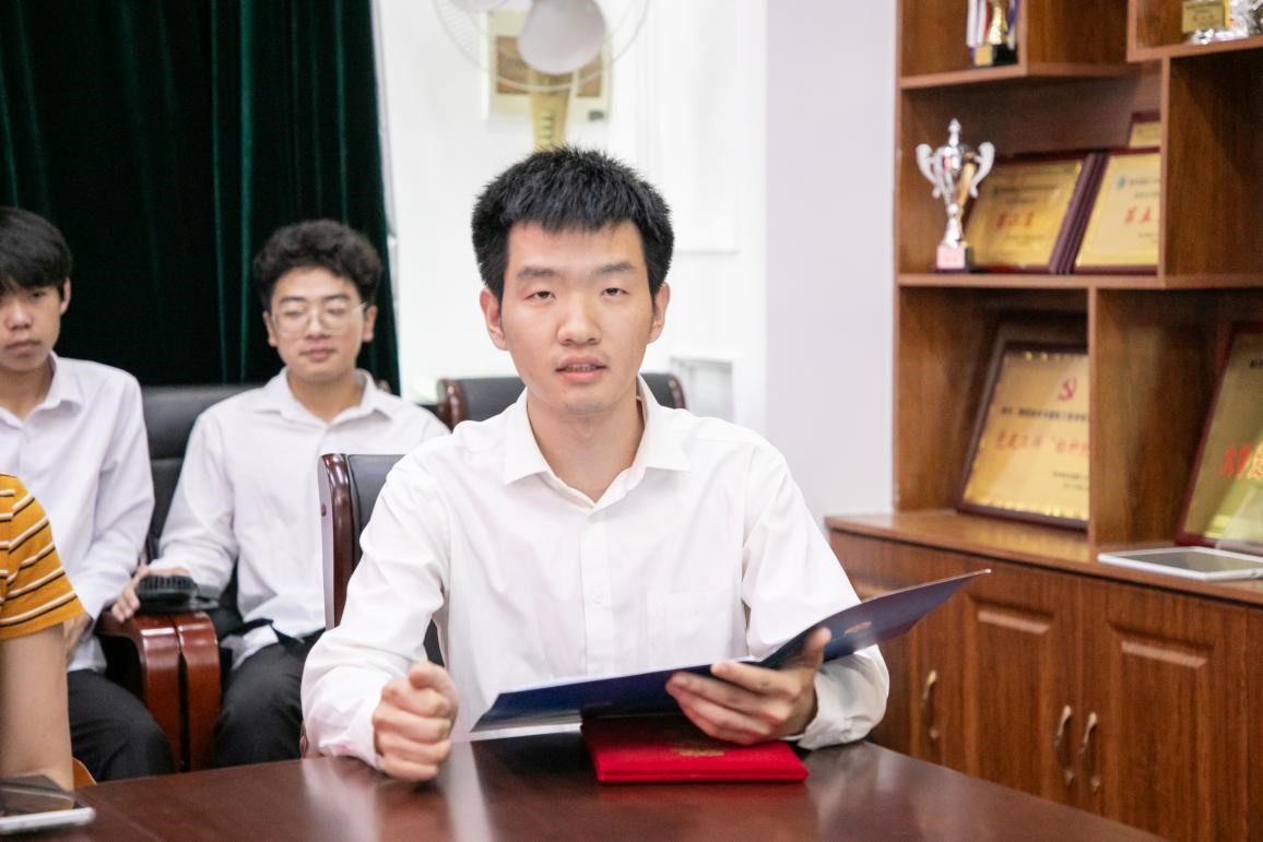 通信工程专业22级5班汪建鑫作为获奖学生代表进行发言。他首先感谢学院和苏州易德龙科技股份有限公司的共同培养。通过在校期间的学习与成长经历的回顾,他表示此次获奖不仅是对过往努力的肯定,更是一份激励前行的动力,未来将以更加饱满的热情投入到学习与实践中,以优异的成绩回报企业和学院的关怀,用实际行动践行当代青年的责任与担当。