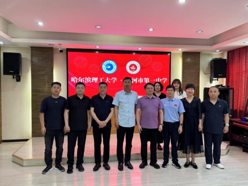 学校招生工作人员与黑河一中领导老师合影