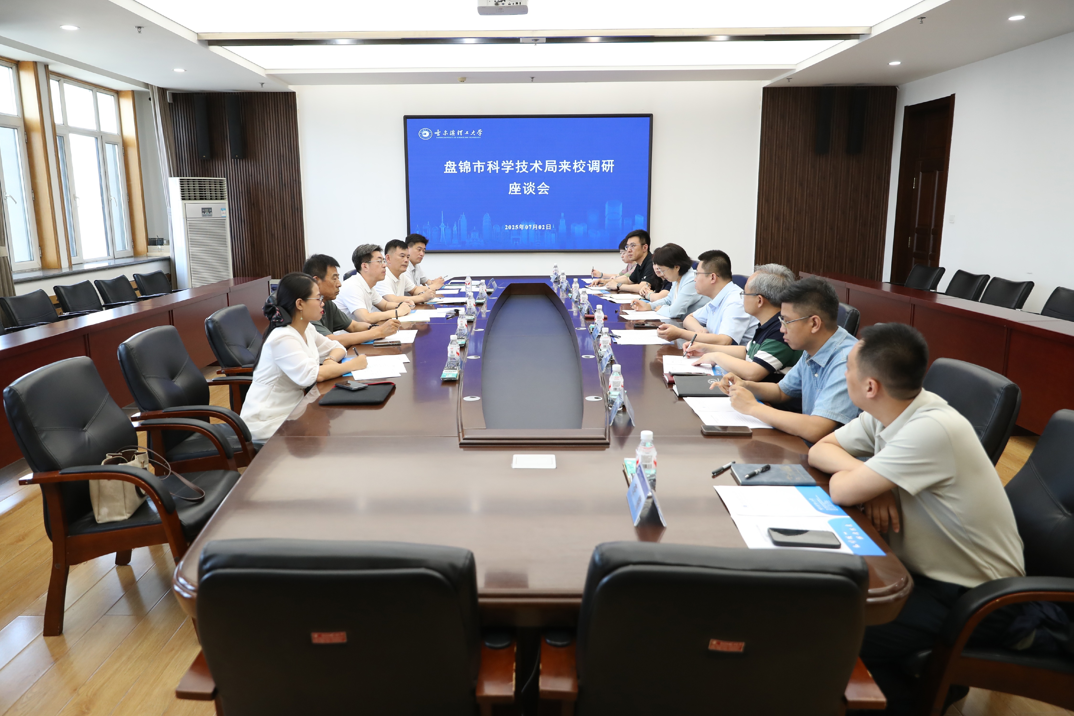 为推动高校资源与地方需求紧密结合,切实将科教优势转化为产业优势,7月2日下午,盘锦市科技局党组书记王文春、盘锦中录油气技术服务有限公司总工程师黄子舰等一行来校调研交流。学校党委常委、副校长石颖出席会议并讲话。会议由科技处副处长黄韬主持。