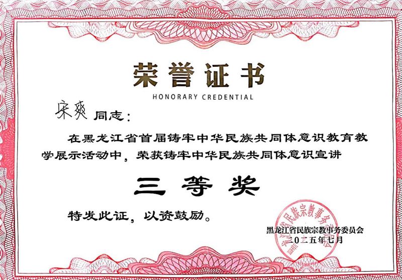 7月2日,黑龙江省首届铸牢中华民族共同体意识教育教学展示活动结果揭晓。永利官网推选的宣讲作品《中华民族共同体意识的千年传承与当代实践》,经过视频展示和现场教学两个环节比拼,荣获三等奖。