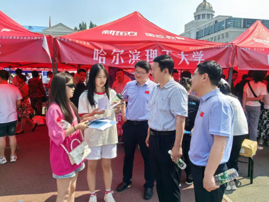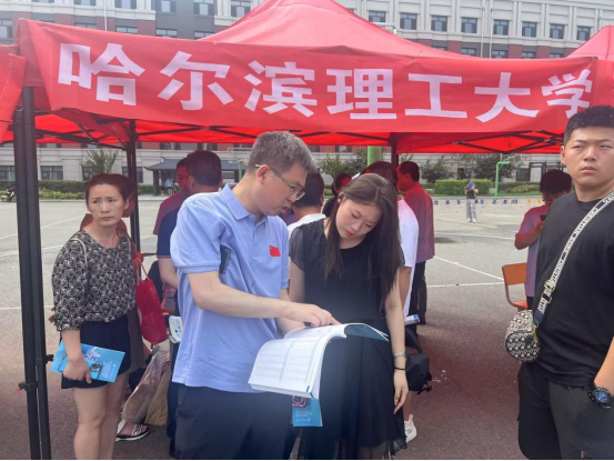 在哈尔滨师范大学附属中学,联系点校领导、副校长林屹带领学院班子成员深入现场咨询会指导招生工作,为考生及家长细致解读学校招生计划、专业特色及相关政策。招生工作人员现场为考生和家长答疑解惑,院长岳彩旭参加了东北网哈师大附中现场直播宣传。在哈尔滨市德强中学,学院党委副书记张智洪与姜文朔老师参加了定点招生咨询工作,向考生和家长们介绍学校办学历史、学科专业设置、师资力量、人才培养成效及就业竞争力,结合历年录取数据与位次信息,为前来咨询的考生答疑解惑。
