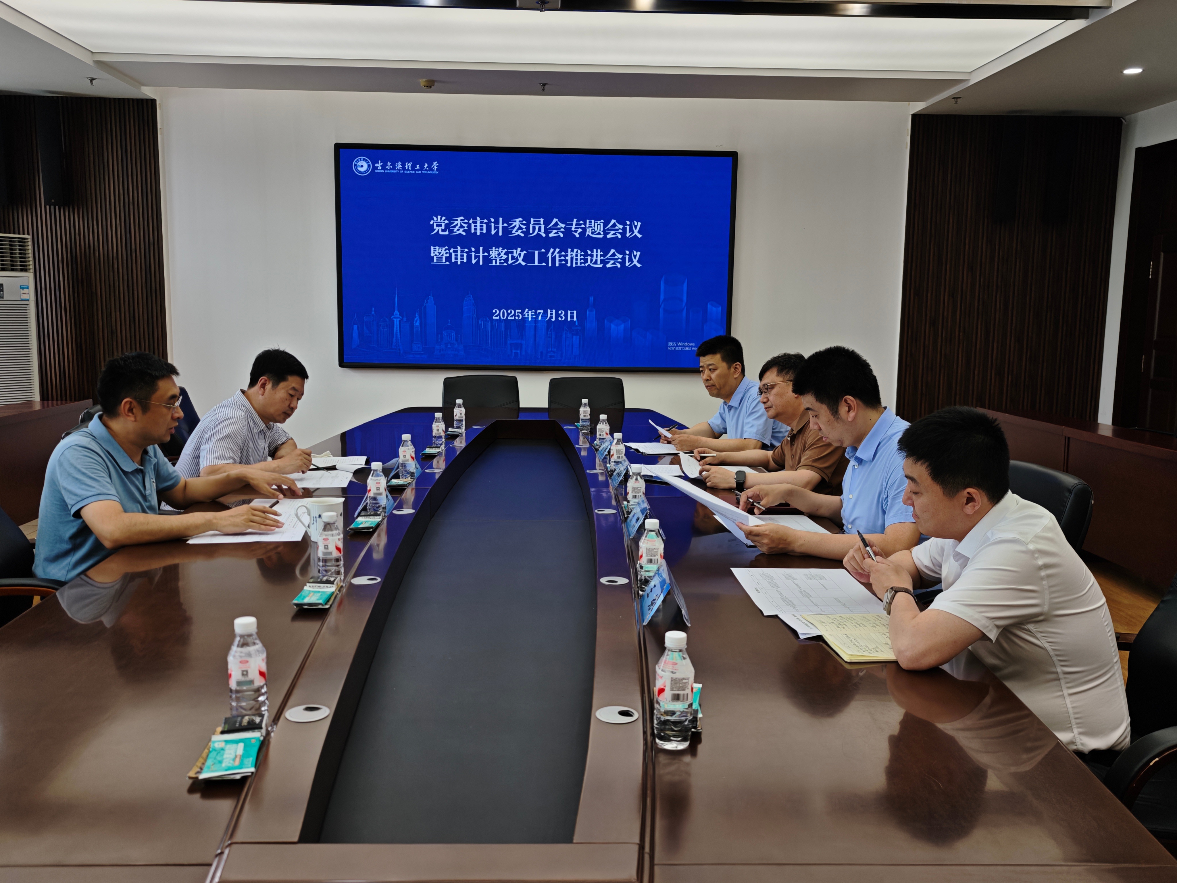 会上,财务处、国有资产管理处、后勤管理处等部门负责人逐一就牵头负责的审计发现问题分阶段整改和持续整改的进展情况、存在困难及下一步打算进行汇报。林屹就审计委员会办公室推进落实审计整改工作、各部门协同配合保障整改进度情况进行了介绍。