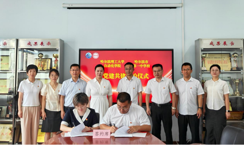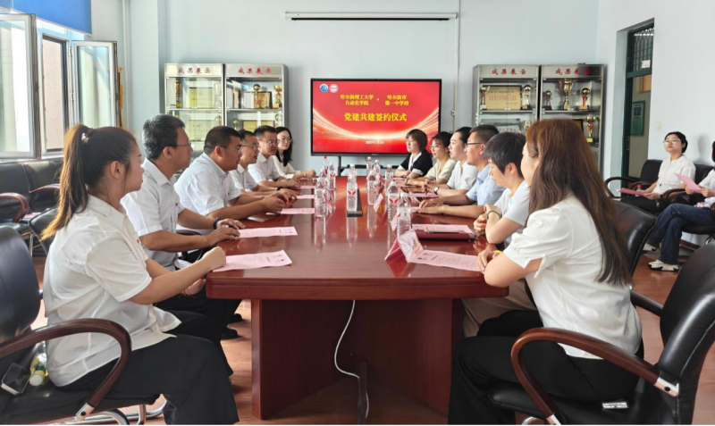 为深入贯彻落实全国、全省高校党的建设工作会议精神,7月9日,自动化学院、哈尔滨市第一中学校的教工党支部在教学主楼E1412举行党建共建签约仪式。学院党委书记张颖、院长胡军、党委副书记刘桂娟、副院长李冰、人工智能党支部书记于浍、辅导员兰思嘉,哈尔滨市第一中学校工会主席崔岩、党政办公室主任曲福利、高三党支部书记方磊以及高三年级其他党员教师出席签约仪式。