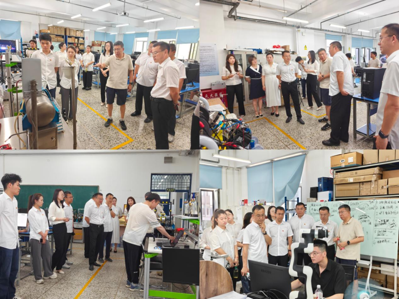 与会人员还共同参观了学院人工智能系实验室,人工智能系主任徐军详细介绍了实验室的教学科研设备、前沿研究成果以及人工智能技术在教育教学中的应用案例。参观过程中,徐军主任重点通过人机互动展示了智能机器人避障、人形机器人手臂灵巧操作等研究成果。并结合党建共建主题,分享了学院在产学研结合、服务地方发展方面的成功经验。
