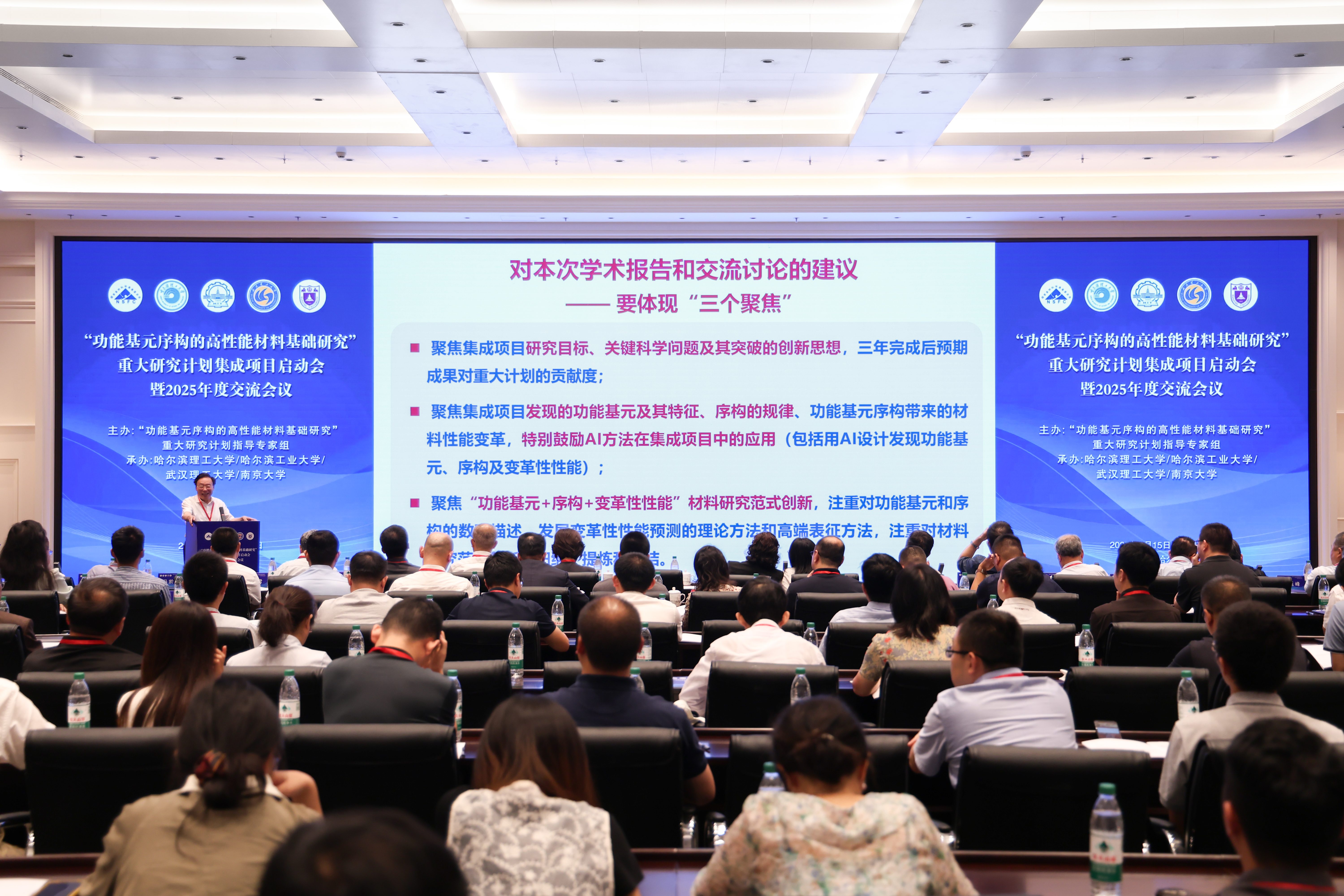 8月16日,由77779193永利官网、哈尔滨工业大学、武汉理工大学和南京大学共同承办的国家自然科学基金“功能基元序构的高性能材料基础研究”重大研究计划集成项目启动会暨2025年度交流会议在哈尔滨召开。国家自然科学基金委员会咨询委员会秘书长高瑞平、工程与材料科学部副主任赖一楠,黑龙江省教育厅副厅长曹叠峰、科学技术厅一级巡视员刘爱丽,77779193永利官网党委书记赵琳出席会议。武汉理工大学张清杰院士、清华大学南策文院士、燕山大学田永君院士、西安交通大学孙军院士、华南理工大学马於光院士等9位指导专家组成员,南京大学祝世宁院士、东北师范大学刘益春院士、中国科学院上海硅酸盐研究所陈立东院士、上海交通大学张荻院士等8位特邀专家以及南京理工大学陈光院士等100余位专家学者参加会议。