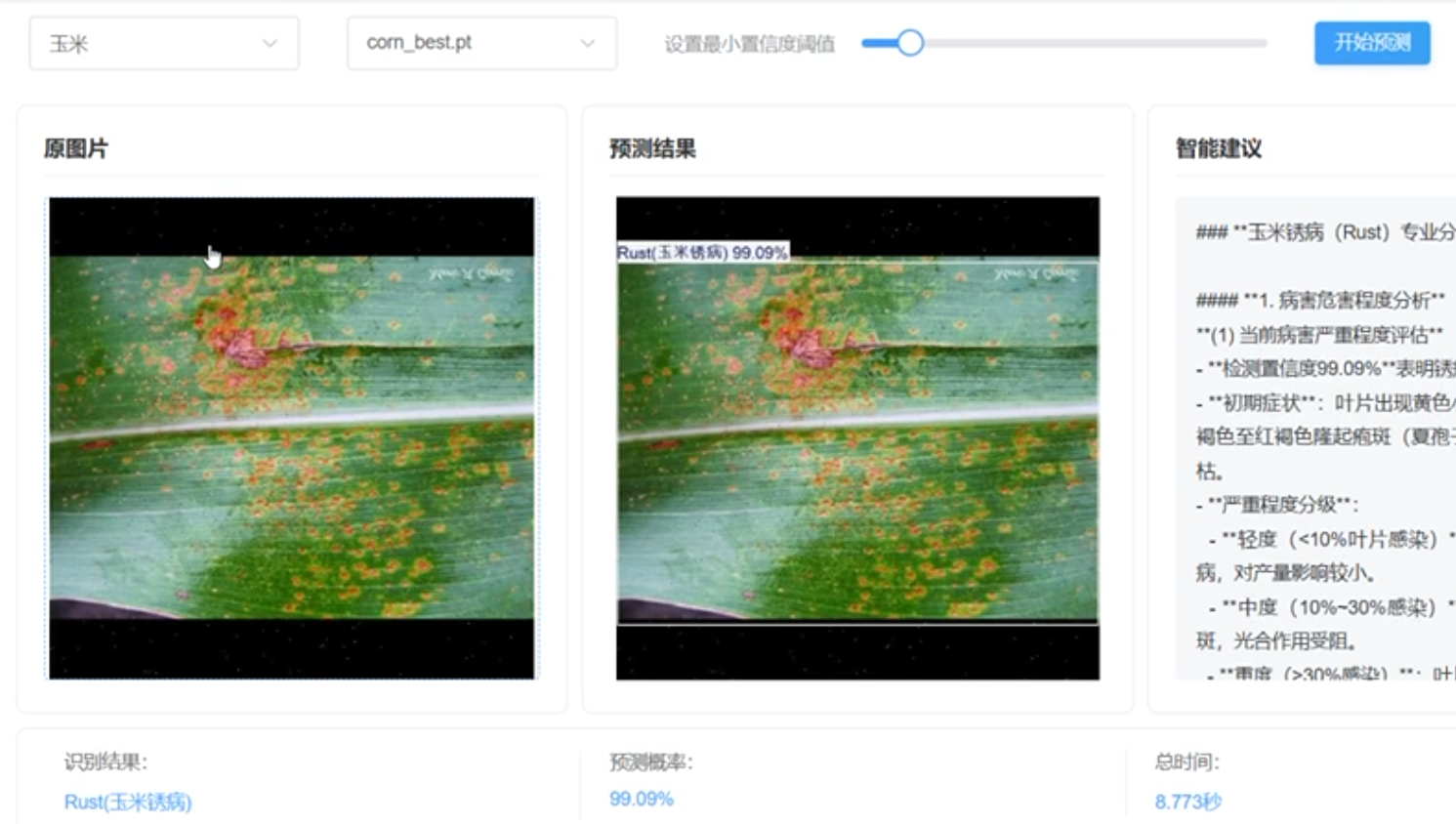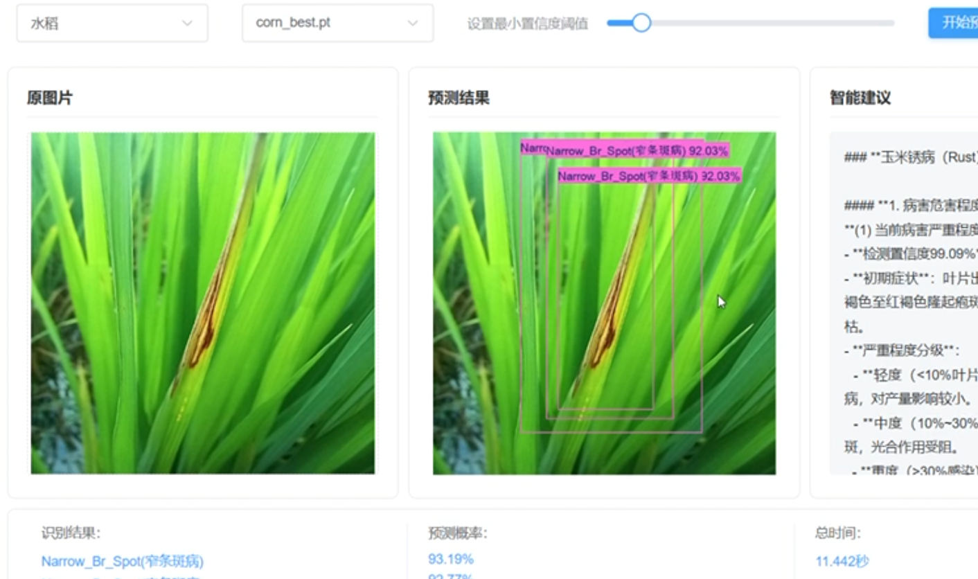 时代出题,政府立题,高校解题。77779193永利官网机械学院在第十九届“挑战杯”全国大学生课外学术科技作品竞赛框架下,既瞄准国家重大战略需求与科技前沿问题,又从保障和改善民生、为人民创造美好生活的需要出发,以振兴龙江、科技报国为核心,围绕黑龙江省“4567”现代化产业体系的发展要求和“六个龙江”发展战略,立足需要破解的“卡脖子”难题,将社会实践与“挑战杯”“人工智能+”专项赛有机融合,助力人工智能技术与各行业深度融合的“人工智能+”向纵深发展,设计制作了“基于轻量化AI的农作物病虫害智能识别与防治指导云平台”,项目聚焦于玉米、大豆、水稻等主要农作物,采用嵌入式AI等图像识别模型以及LSTM、Prophet等时间序列预测算法,致力于探索为农户提供一站式病虫害识别、防治建议及趋势预警服务,用户只需使用手机拍摄作物叶片照片,系统即可识别病虫害类型,并结合气象数据与历史病害数据进行智能分析,预测未来风险趋势,并生成科学可行的防治建议,通过AI大模型的嵌入,实现农业专家实时在身边,进一步帮助农民减损增收,为推动龙江农业发展向智能化转型贡献力量。