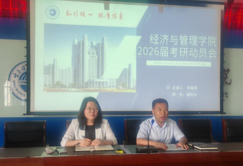 为帮助2026届毕业生坚定考研目标,把握考研政策,合理规划考研路径,2025年9月2日,经济与管理学院在南区一号楼740教室召开2026届毕业生考研动员大会暨保研政策说明会。本次动员会由孙嘉轶副院长主讲,毕业班辅导员及2026届全体准备考研、保研学生参加会议。会议由学院党委副书记郭宝鹏主持。