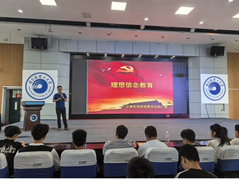 2025年9月11日上午,计算机学院党委书记孙广路以“坚定理想信念,担当时代使命”为主题,在一号楼0220报告厅为全体大一新生讲授深刻而富有启迪的“开学第一课”。