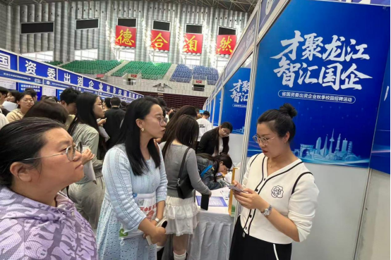 “才聚龙江 智汇国企”省国资委出资企业秋季校园招聘会于9月15日在东北林业大学体育馆拉开帷幕。理学院积极落实就业工作“一把手”工程,充分发挥领导班子在毕业生就业工作中的带头示范作用,理学院党委书记宋广军、院长毕卉、党委副书记王冰、副院长吴丰民以及毕业班辅导员孙国宇深入招聘现场开展跟进指导,与参会单位代表和毕业生展开了深入的沟通交流。