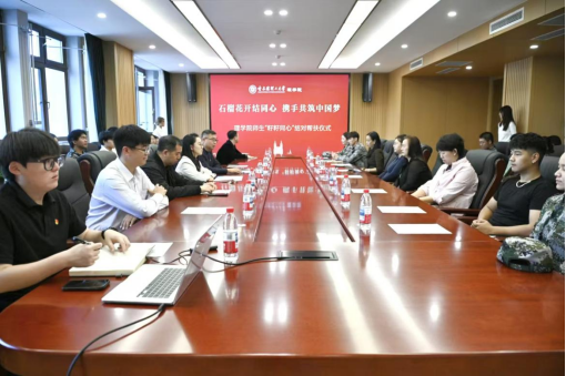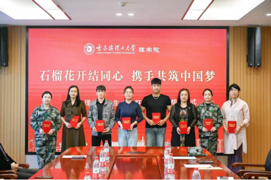石榴花开映初心,同心共筑民族情。为进一步铸牢中华民族共同体意识,搭建师生互助成长桥梁,助力青年学生成长成才,9月19日,理学院于西区新能源楼221会议室举办“石榴花开结同心,携手共筑中国梦”理学院师生“籽籽同心”结对帮扶仪式。学院党委书记宋广军,院长毕卉,院党委副书记王冰,副院长孟桂芝、吴丰民、校“石榴籽”工作室负责人刘元昊、工科数学教学中心教师李兴华、汪海蓉、李莎莎、付作娴与结对学生代表齐聚一堂,共同见证这一温暖时刻。仪式由理学院党委副书记王冰主持。