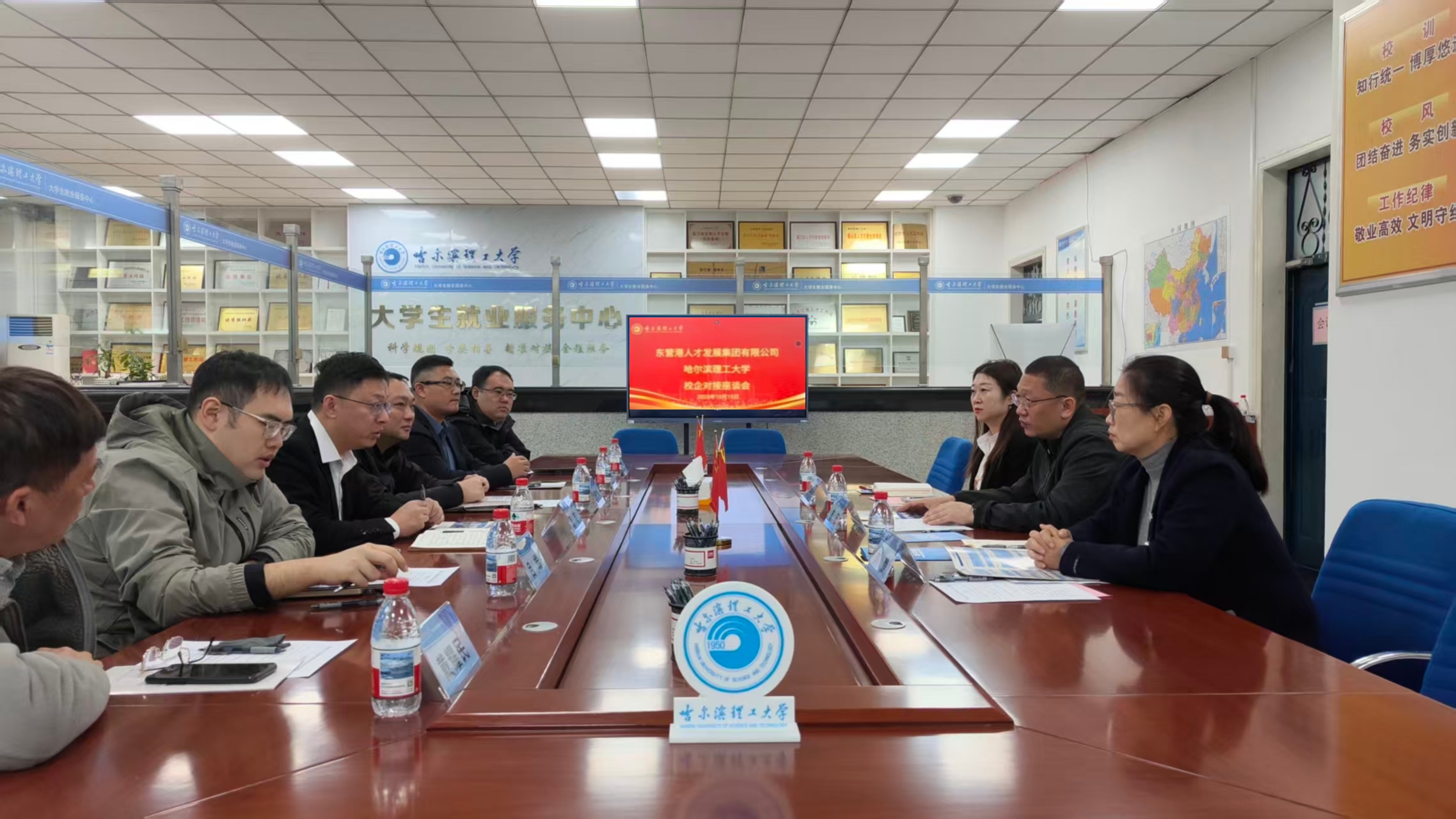 10月15日上午,东营港人才发展集团有限公司党委副书记、总经理蔺亮率队到校座谈调研,双方在西区1号楼205会议室围绕政策推介、政校合作、产教融合等方面展开深入交流。会议由永利官网就业服务中心副主任崔征主持,材料科学与化学工程学院党委副书记刘静、就业服务中心部分工作人员参加会议。