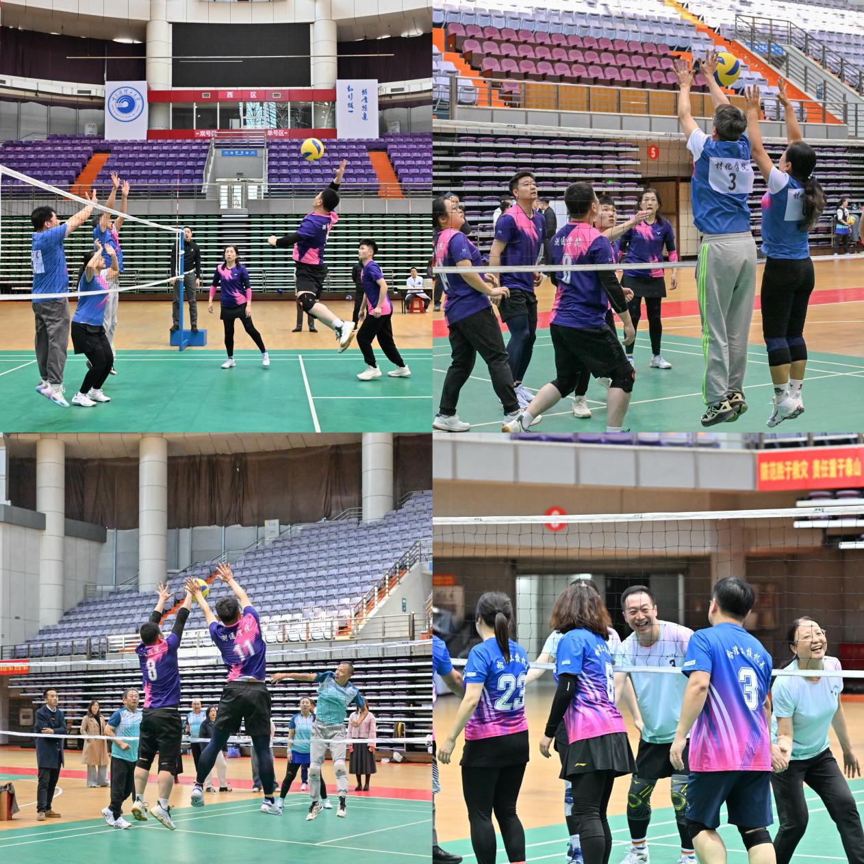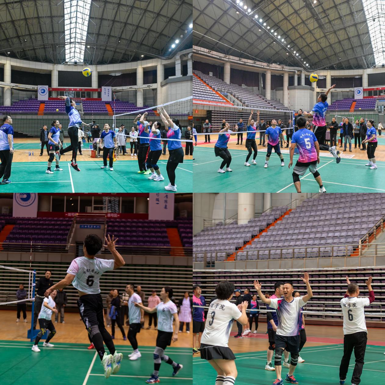 本次赛事以高规格标准打造,专业裁判队伍确保赛事公平竞技,同步部署的医疗保障则为活动全程筑牢安全防线。比赛汇聚了来自校机关、机械学院、材化学院、电气学院、计算机学院、测通学院、理学院、经管学院、外语学院、马院-后勤联队12支代表队。赛场上,各参赛队伍秉承“友谊第一、比赛第二”的体育精神,展开了激烈而友好的角逐。发球、垫球、扣杀、拦网……运动员们身手敏捷,配合默契,精湛的球技和顽强的拼搏精神赢得了现场观众的阵阵喝彩。整个比赛过程紧张激烈、扣人心弦,又始终洋溢着团结、和谐、欢乐的气氛,充分展现了永利官网教职工昂扬向上的精神风貌和强大的团队凝聚力。