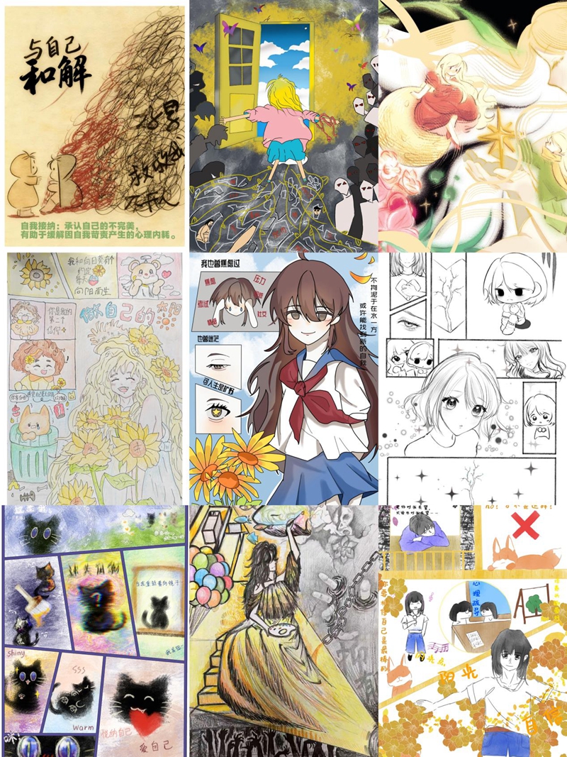 为创新心理育人形式,提升心理健康教育实效性,引导学生塑造积极乐观的人生态度,培养自尊自信、理性平和的健康心态,外国语学院开展以“心语心约,与你同行”为主题的心理漫画比赛。参赛作品形式多样、创意新颖,同学们通过漫画这一生动活泼的艺术形式,展现了当代大学生对心理健康问题的深刻思考和对美好生活的积极追求。