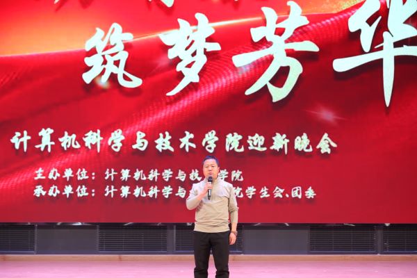 晚会伊始,黄海登台发表致辞。他首先向到场的嘉宾与师生致以诚挚问候,随后向2025级全体新生送上热烈欢迎,并以温情寄语点亮学子心灯:“珍惜弥足珍贵的大学时光,抓住每一个成长契机,乐于钻研新知、敢于超越自我,在知识海洋中探索未知,在实践舞台上锤炼本领,在哈理工计科院这片沃土上,谱写属于自己的人生华章。”黄海的话语饱含期许、温润有力,不仅深深触动了每位同学的心弦,更引发全场强烈共鸣,雷鸣般的掌声经久不息,为这场晚会开篇便上了浓墨重彩的一笔。