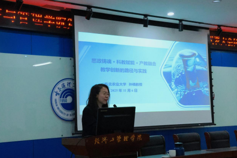 为深入贯彻落实党的二十大和党的二十届四中全会精神,弘扬传承老校长王大珩先生“教研并举,理工结合;多科互用,形成特色;卓育人才,亦能亦德”的教育理念,经济与管理学院于11月6日成功举办“思政铸魂·科教赋能·产教融合教学创新的路径与实践”为主题的专题讲座。本次讲座特邀东北农业大学国家重大人才工程青年学者孙楠教授担任主讲人,学院中青年骨干教师、教学督导、教务处相关科室负责人同志等60余人参会。会议由副院长姚锋敏教授主持。