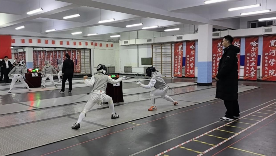 11月9日,由黑龙江省教育厅主办、哈尔滨学院承办的2025年黑龙江省第十三届大学生击剑锦标赛圆满落幕。本届比赛吸引了来自全省16所高校的261名击剑健儿同台竞技。在永利官网体育教学部的精心组织与教练员刘正国老师的带领下,派出由王宇昂、吴林、穆思沅、赵梓峥、王文昊、余彤、谢林伶、刘珈瑜、严辰等9名队员组成的代表队参赛。队员们沉着应战,凭借顽强的拼搏精神和精湛的技艺,在赛场上挥洒汗水,充分展现了哈理工学子们昂扬向上的精神风貌。