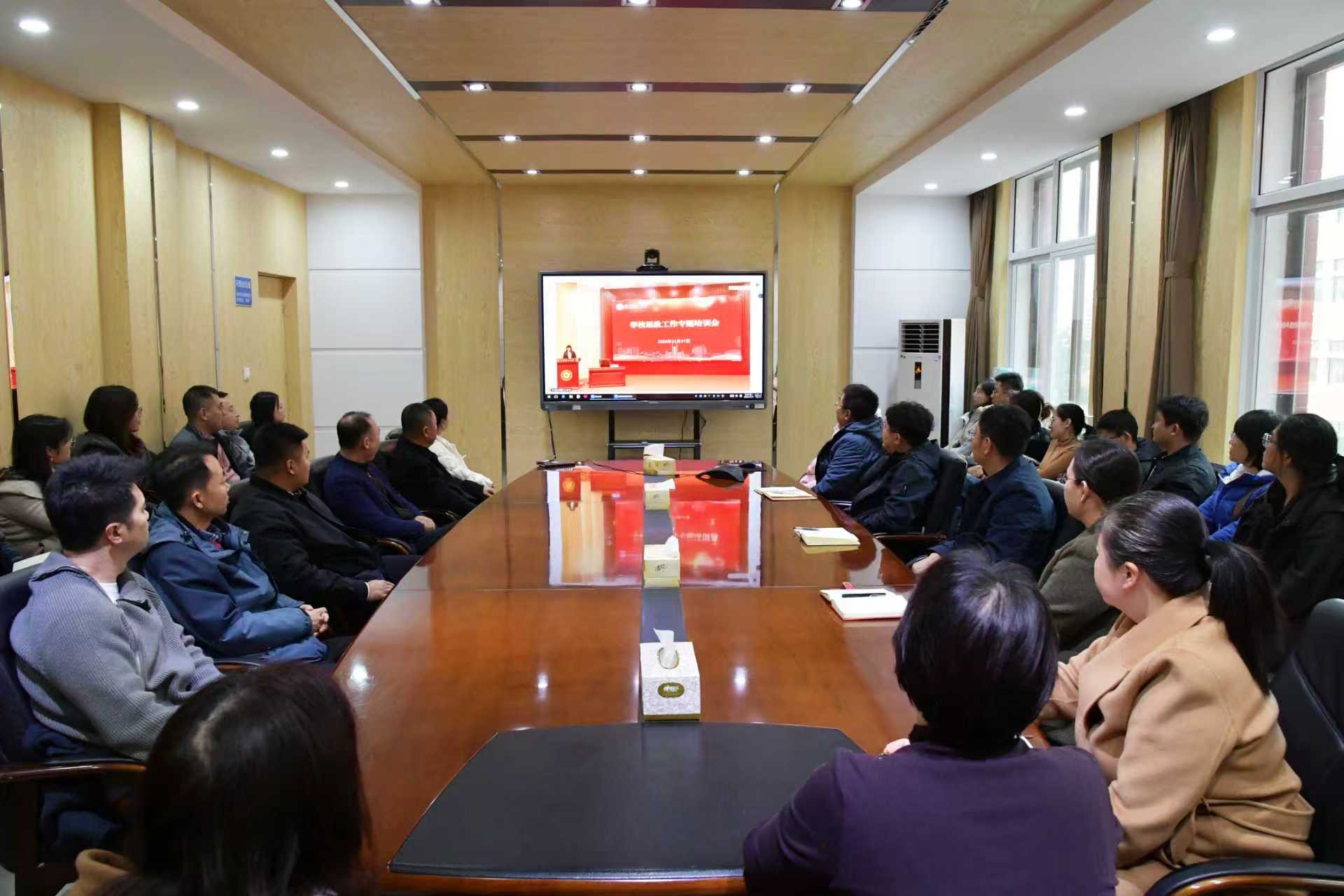 为深入学习贯彻党的二十届四中全会精神,切实将全会精神转化为学校思政工作的具体实践,11月17日,学校在教学主楼五楼报告厅举办思政工作专题培训会。本次培训特邀中教华影副总经理李永亮,全国高校思想政治工作网副主任王慧敏作交流辅导,并调研指导学校“大思政”格局构建、场馆育人等工作。