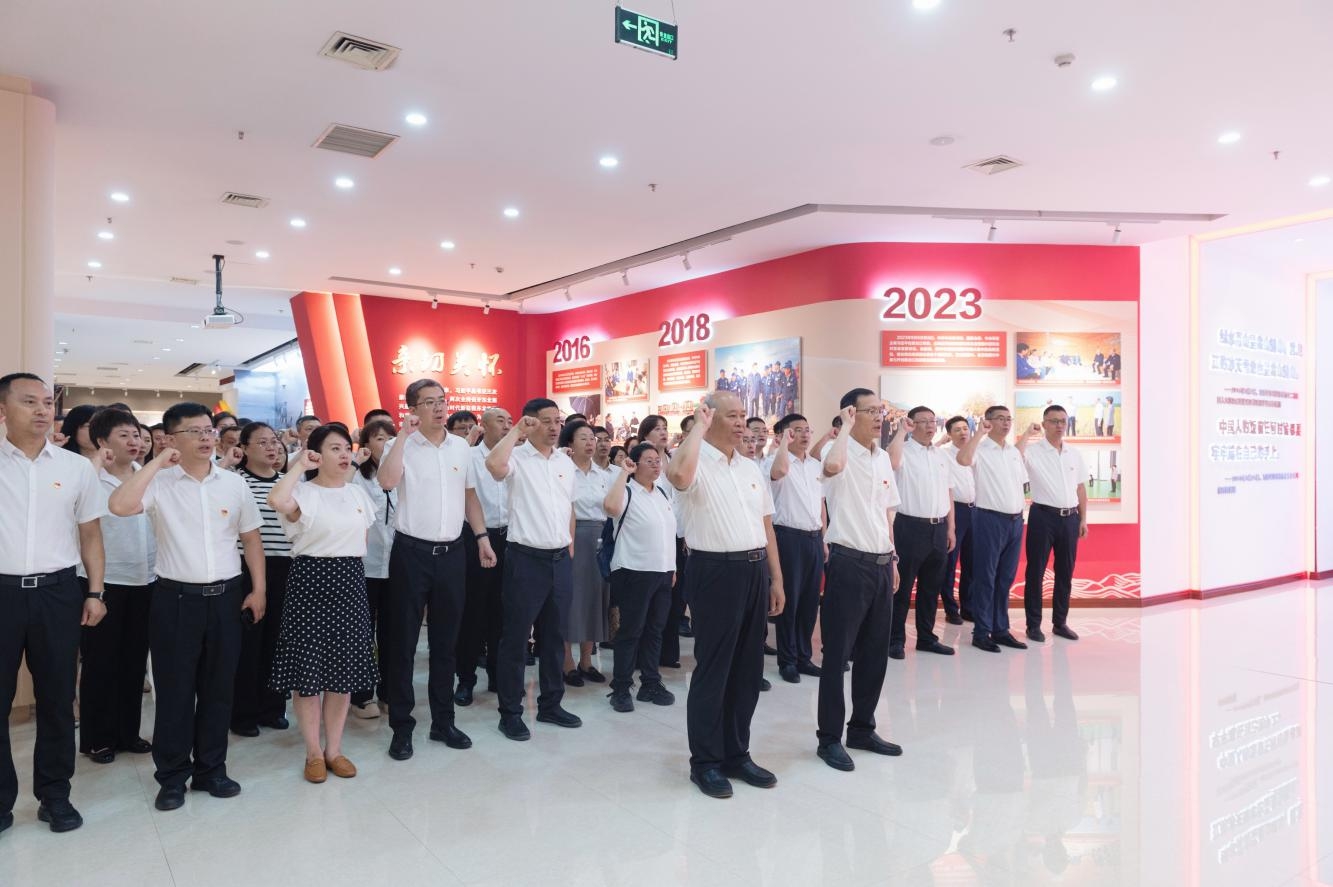 党员干部集中观看警示教育纪录片《永远吹冲锋号》后,依次参观了“反腐之路”、“警示教育”、“示范教育”三个主题展厅。“反腐之路”展厅,从中国古代的廉政思想、监察制度、反贪举措和廉吏贪官故事,到中国共产党成立后反腐举措的力度、深度、强度,全面展示中国共产党建党一百多年来走过的反腐倡廉道路,特别是党的十八大以来以习近平同志为核心的党中央推进全面从严治党取得的历史性成就和我省党风廉政建设及反腐败斗争取得的系列成效。“警示教育”展厅,大家深入了解了近年来查处的全国和我省典型案件,受到深刻警醒,对“违规吃喝集中整治”的重要性有了更加清醒的认识。“示范教育”展厅,了解老一辈无产阶级革命家在艰苦的革命岁月中廉洁奉公、无私奉献的事迹,深入学习习近平总书记视察黑龙江期间重要讲话重要指示精神,深刻铭记习近平总书记的殷殷嘱托。参观最后,全体党员干部面对党旗庄严宣誓,重温入党誓词,再次回顾入党初心,再次表态对党忠心,再次承诺履职使命。