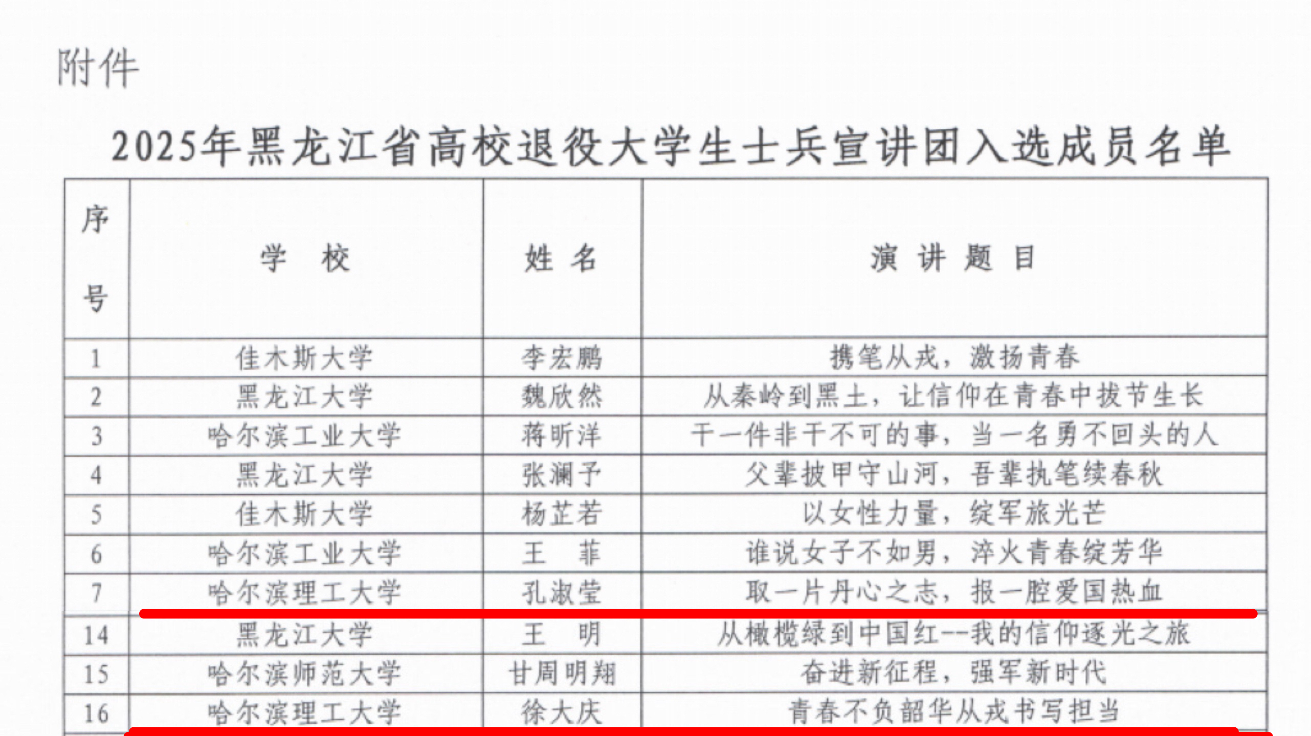 在本次全省高校征兵宣传重点工作开展中,学校不断创新宣传形式、拓宽传播渠道,积极融入青年话语体系,通过线上线下融合推进的方式,开展退役大学生士兵事迹宣讲2场次,推出《“戎”耀研途 2025届退伍毕业生榜样力量》系列推送6期,覆盖11000余名学生,2人选入黑龙江省退役大学生士兵事迹宣讲团。