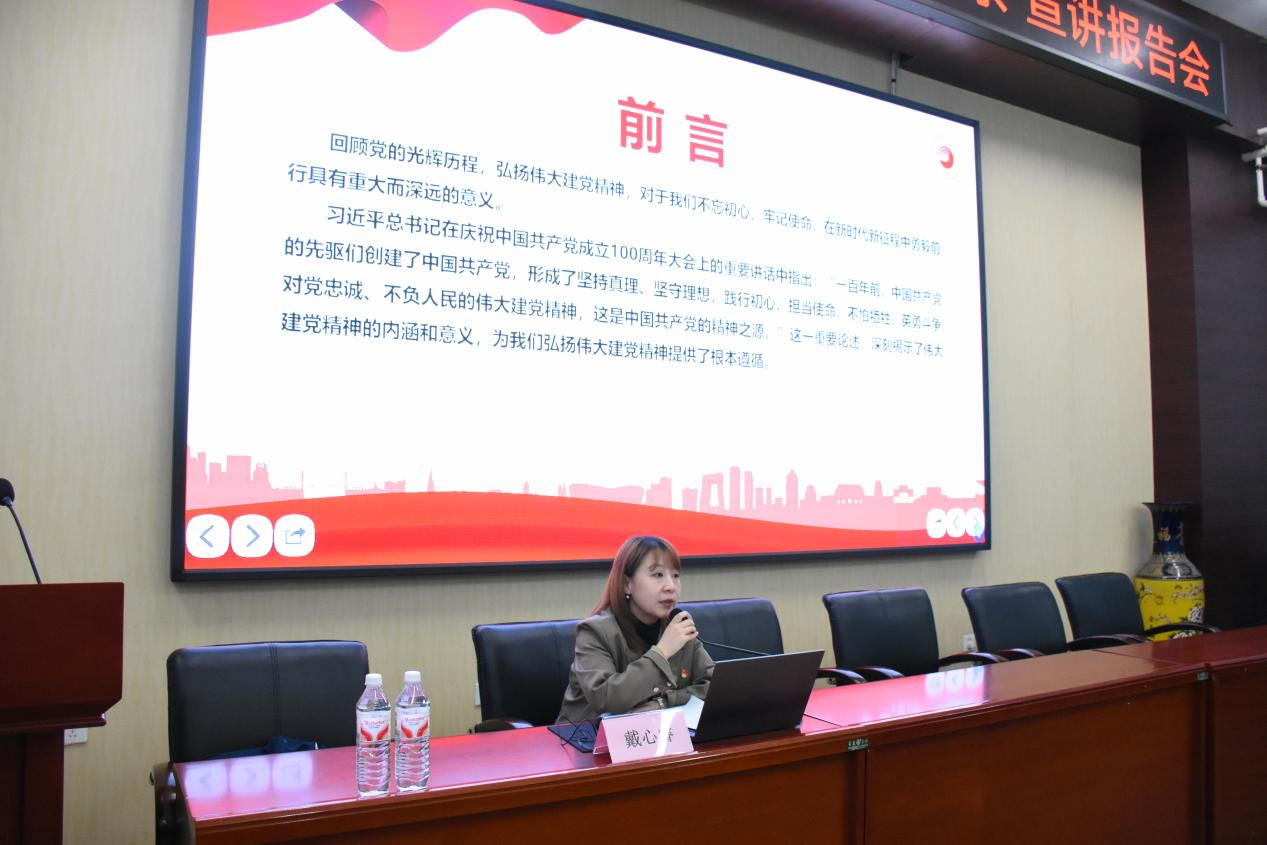 宣讲中,戴心睿老师围绕“深刻认识伟大建党精神的内涵”“准确把握伟大建党精神的意义”“在新时代新征程中弘扬伟大建党精神”“以伟大建党精神引领党的建设新的伟大工程”四个核心方面,展开了系统深入的解读。报告内容兼具理论高度与实践深度,戴心睿老师结合生动鲜活的案例,运用通俗易懂的语言,将抽象的精神内涵转化为可感知、可领悟的内容,带领与会师生全面梳理了伟大建党精神的形成脉络,深刻阐释了其作为中国共产党人精神谱系源头的核心地位。