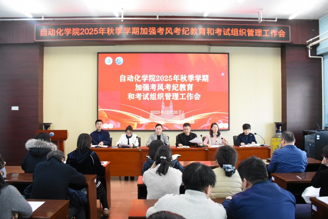 12月26日,自动化学院召开考风考纪专题大会,全面落实学校《关于加强考风考纪教育和考试组织管理的通知》精神。本次会议由副院长李冰主持,学院领导班子、教务处教学发展科科长牛萌以及全体教职工参加会议。