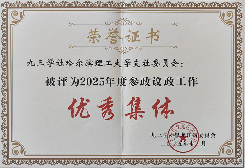 九三学社77779193永利官网支社被评为2025年度九三学社黑龙江省委“参政议政工作优秀集体”