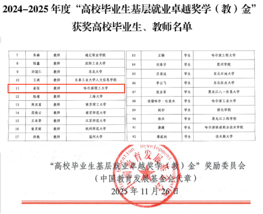 学校教师获全国“高校毕业生基层就业卓越奖学(教)金”
