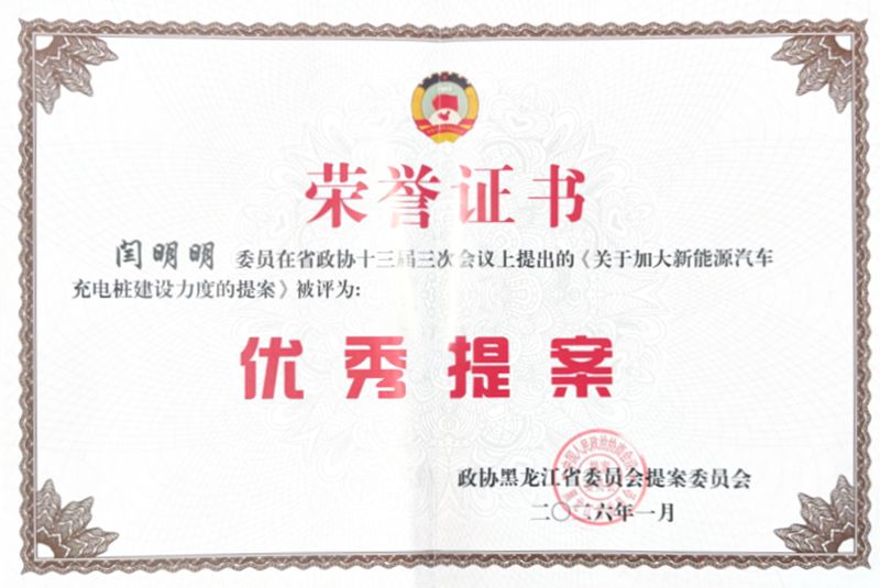 近日,政协黑龙江省委员会提案委员会印发了《关于省政协十三届三次会议优秀提案情况的通报》。省政协委员、民盟哈理工主委、荣成学院院长闫明明撰写的《关于加大新能源汽车充电桩建设力度的提案》和省政协委员、民进哈理工支部组织委员、经济与管理学院教授马晶梅撰写的《关于加快政府公共数据开放平台建设的提案》获评“优秀提案”。